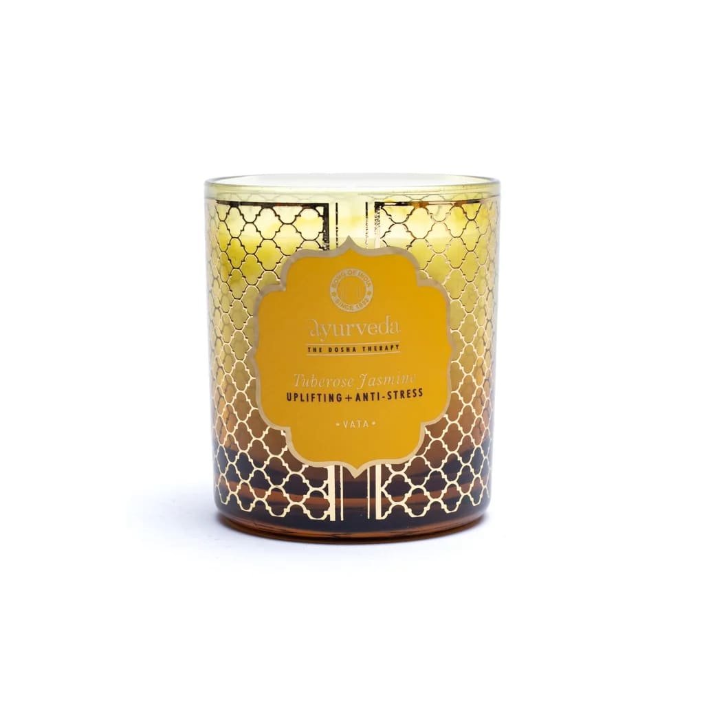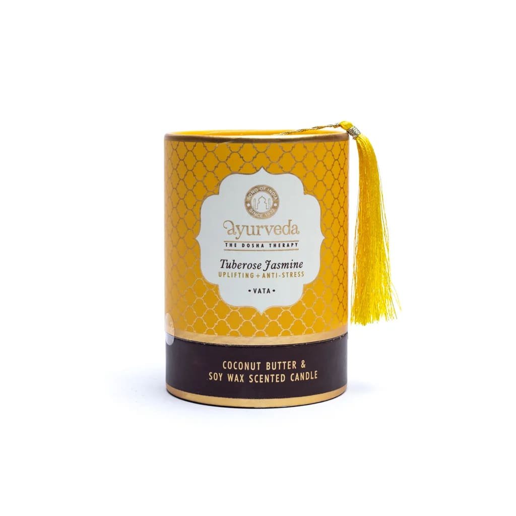 Ájurvédská svíčka Vata - Turberóza a jasmín 55 hodin hoření, ve skle, v dárkové tubě