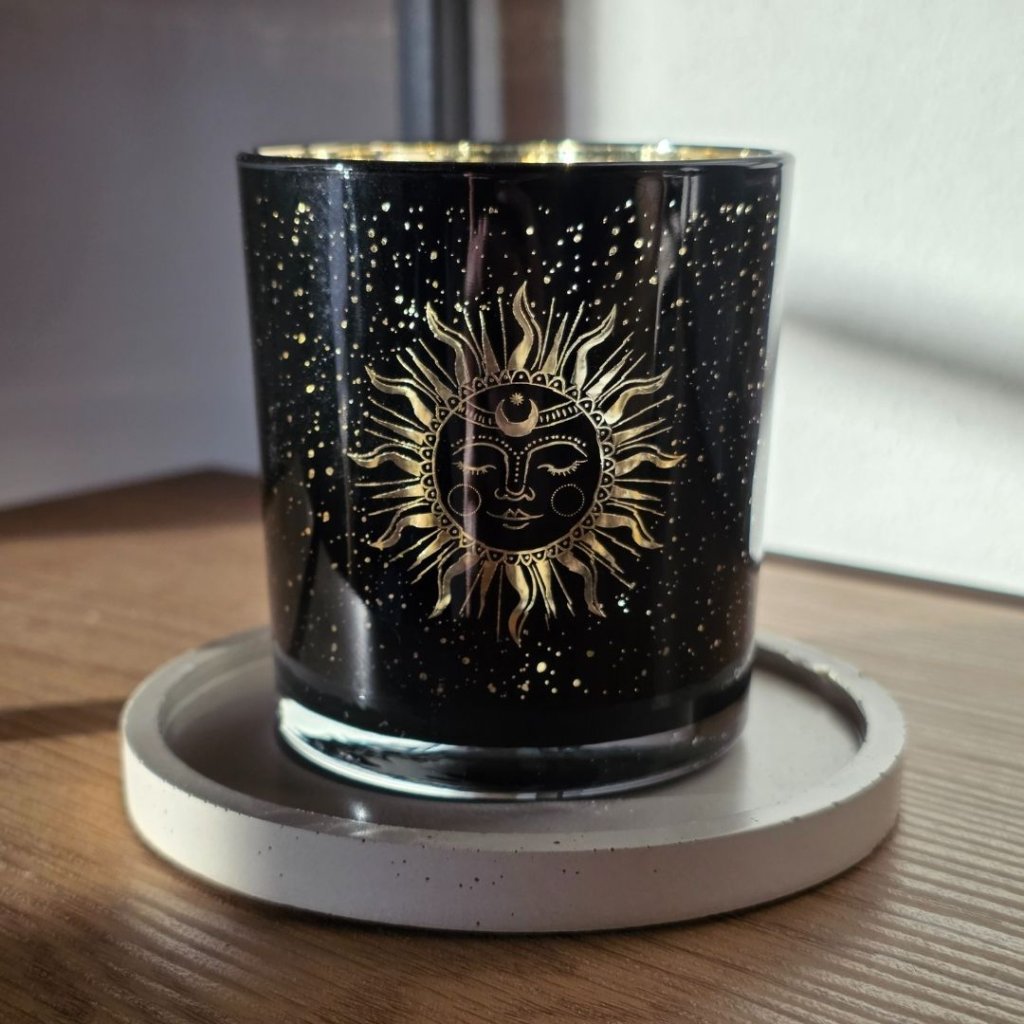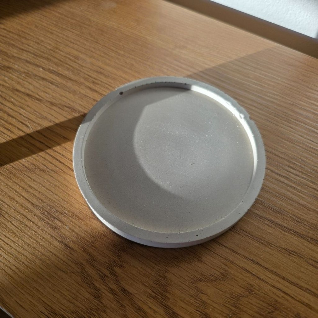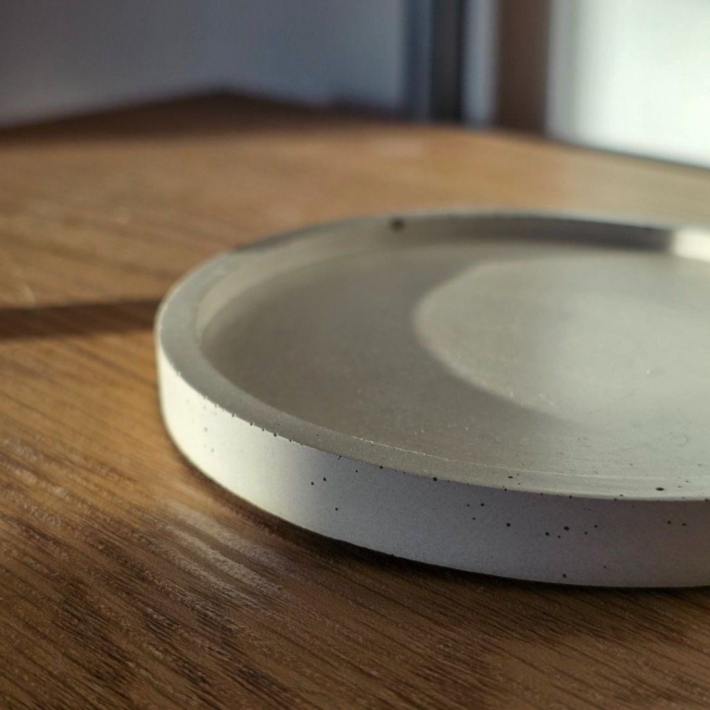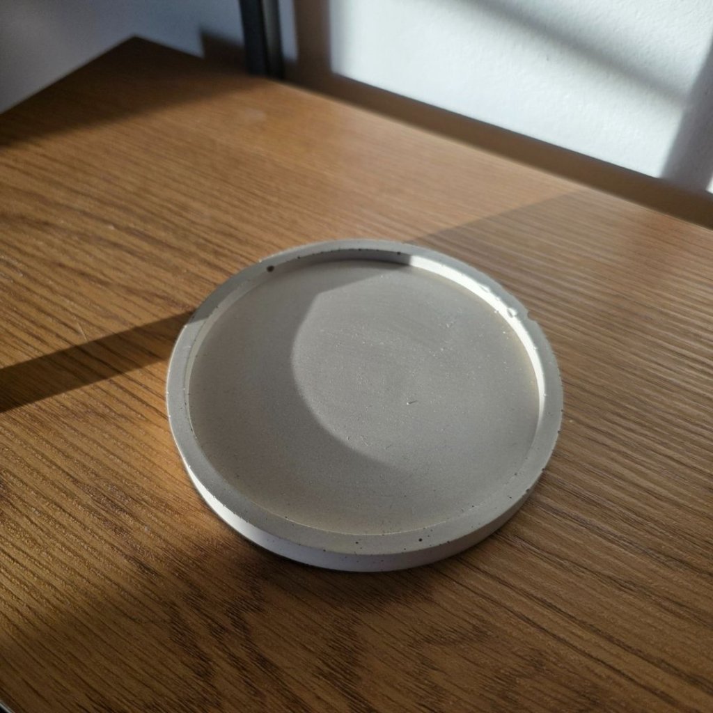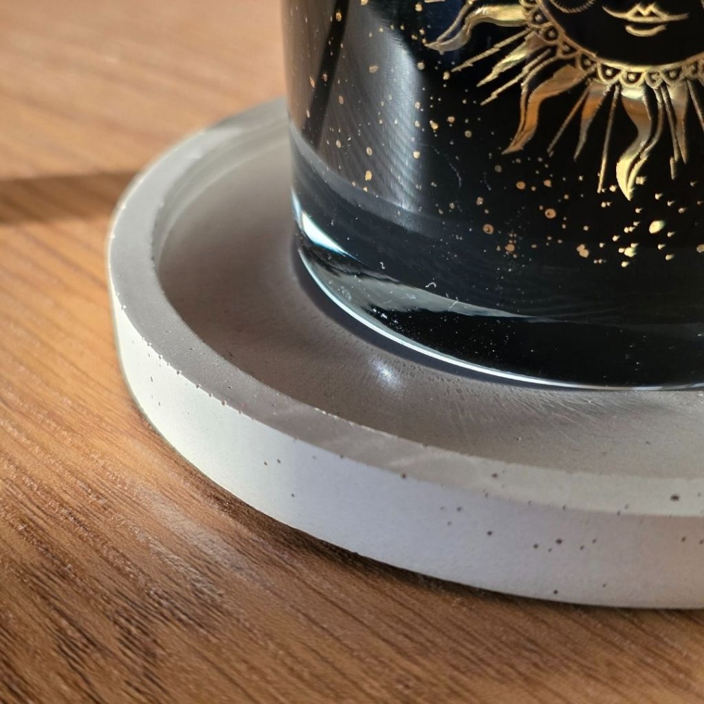 Minimalistický betonový podtácek krásně vynikne v kombinaci s přírodní keramikou, onyxovými svícny nebo svíčkami v jednoduchých skleněných kalíšcích. Pokud máte doma aroma kámen nebo malý krystal, funguje skvěle i jako jejich stabilní základna. Vedle dřevěných podnosů nebo jutových dekorací vytvoří klidný, zemitý celek.
