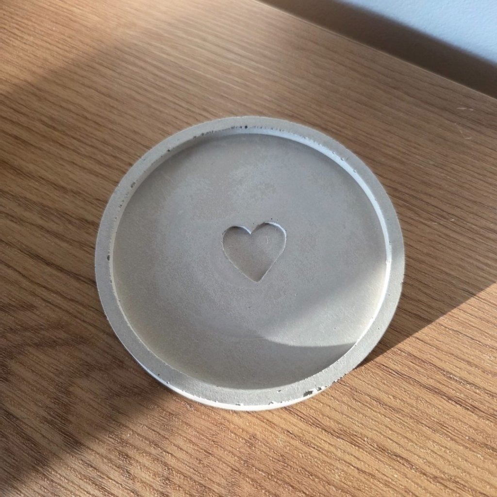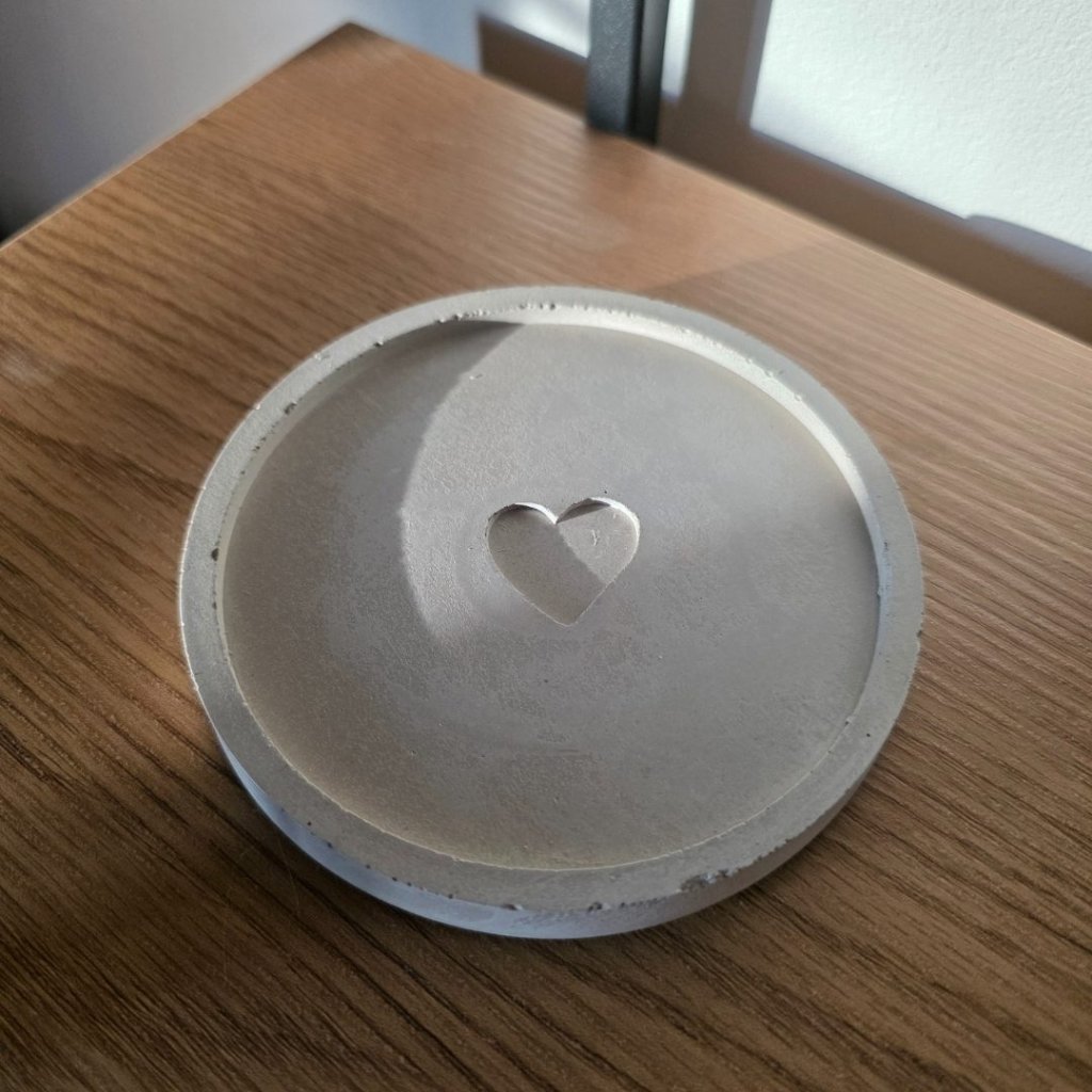 Betonový podtácek se srdíčkem průměr 10 cm, ruční výroba v ČR, s impregnací, na svícny i hrneček