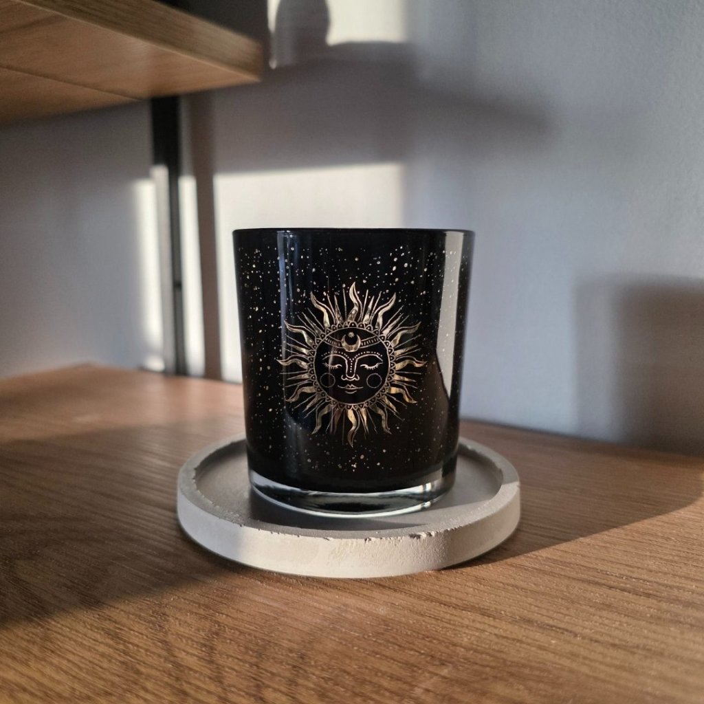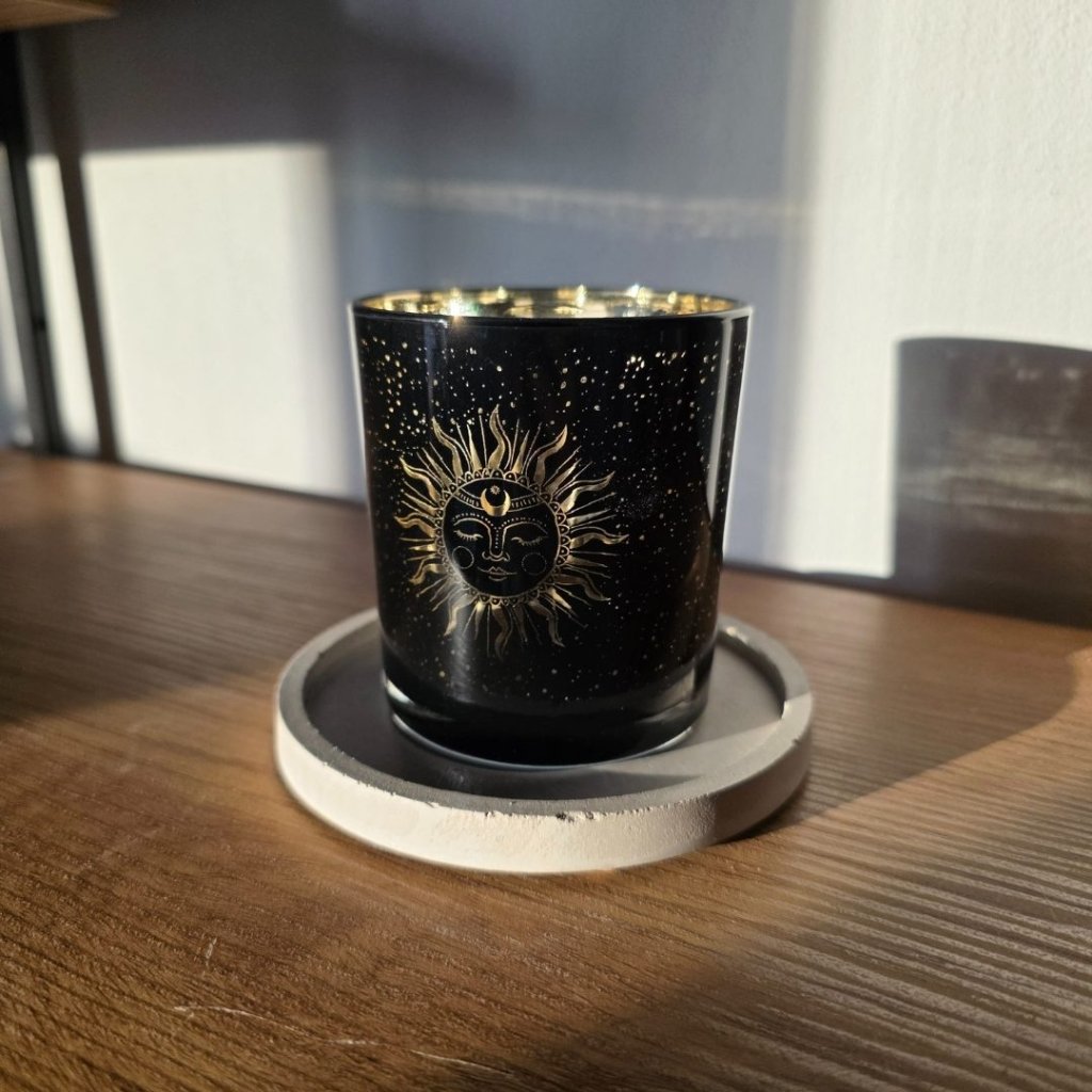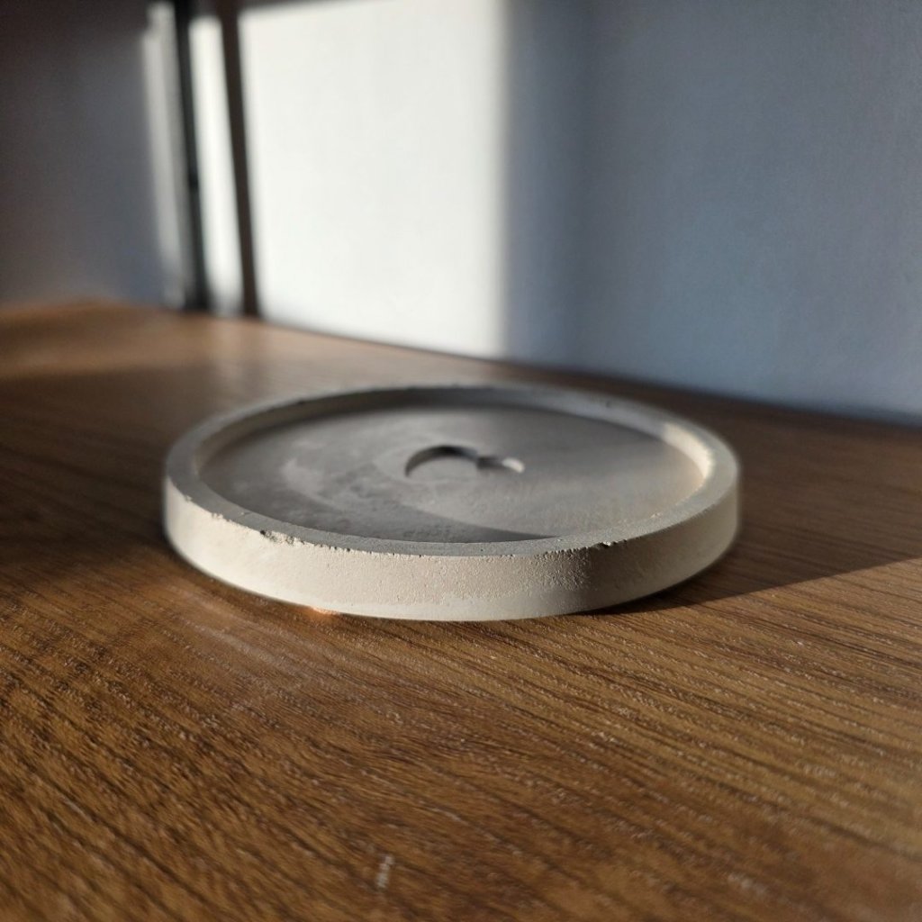 Betonový podtácek krásně vynikne v kombinaci s přírodní keramikou, onyxovými svícny nebo svíčkami v jednoduchých skleněných kalíšcích. Pokud máte doma aroma kámen nebo malý krystal, funguje skvěle i jako jejich stabilní základna. Vedle dřevěných podnosů nebo jutových dekorací vytvoří hezky zemitý celek.