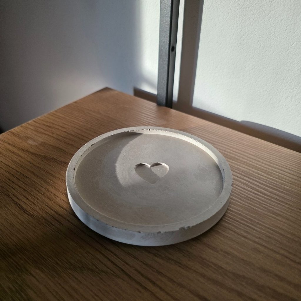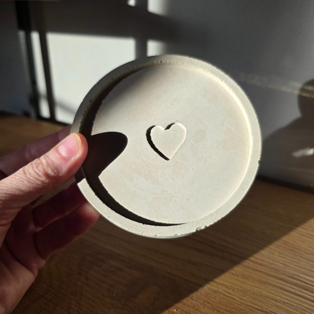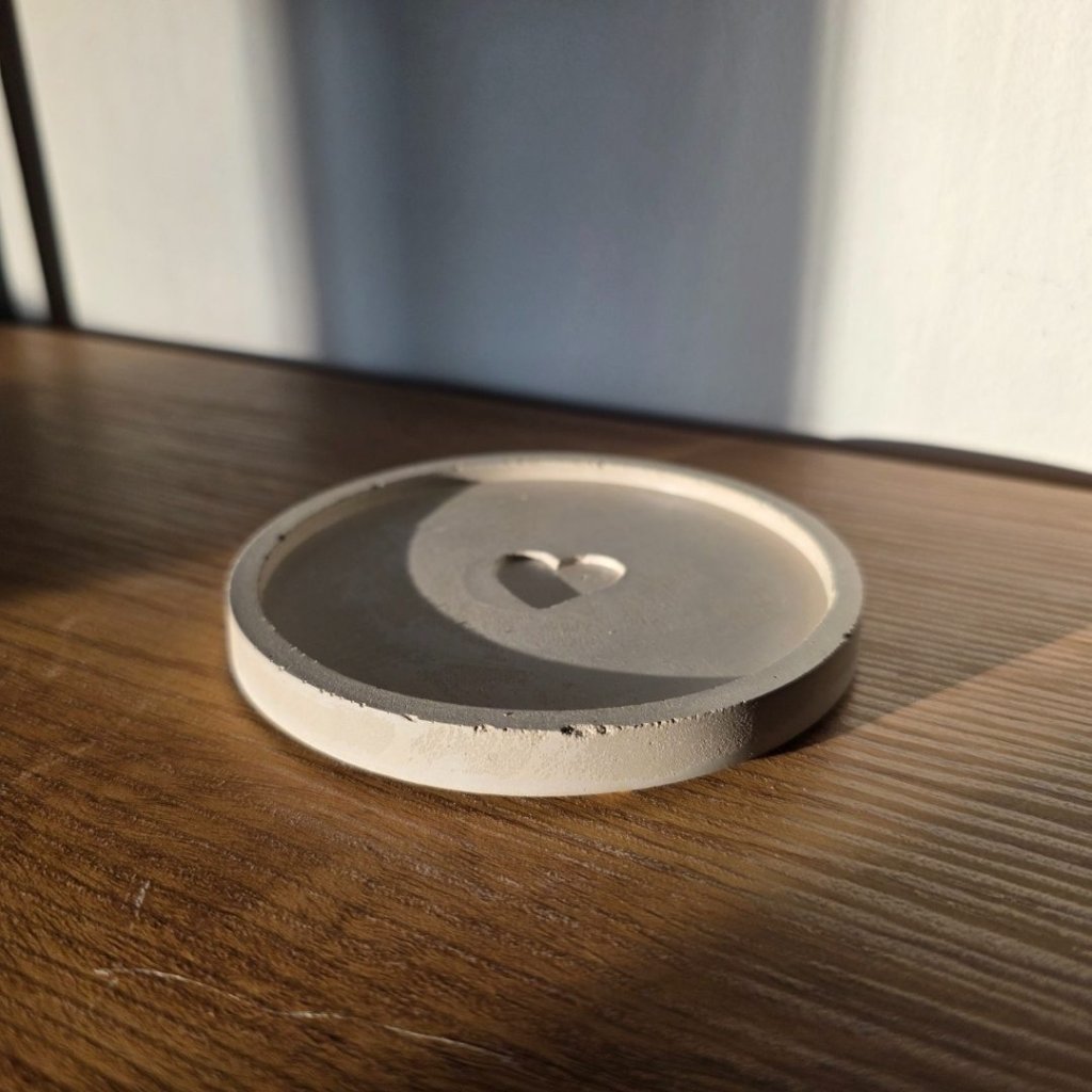 Kulatý podtácek z betonu s minimalistickým vzorem srdíčka dodá každému hrnku, skleničce nebo svíčce klidnou a přirozenou základnu. Podtácek krásně ladí s přírodními materiály i moderním minimalistickým interiérem. Díky neutrální barvě se snadno kombinuje s čímkoliv, co doma máte.