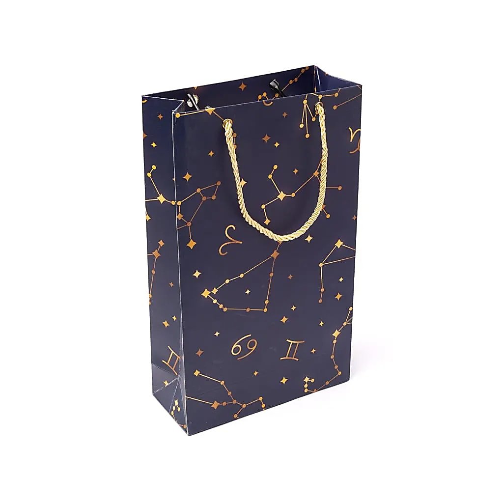 Někdy stačí detail, který promění obyčejný dárek v osobní zážitek. Tato pevná dárková taška s motivem znamení zvěrokruhu v modré a zlaté kombinaci působí elegantně, jemně a přitom má hloubku. Díky kvalitnímu zpracování a pevným uším z kroucené šňůry se hodí pro nejrůznější dárky – od šperků a aromaterapeutických setů až po onyxové svícny nebo dekorační sošky.