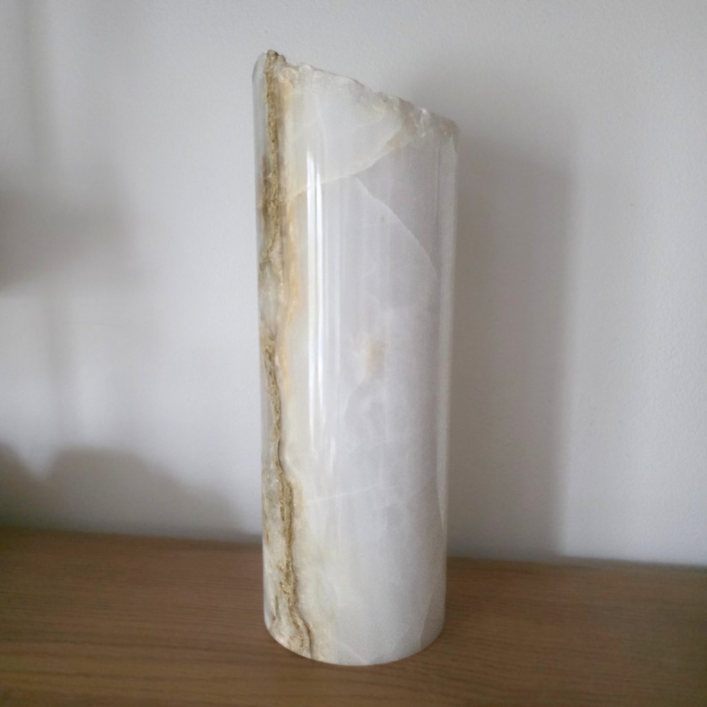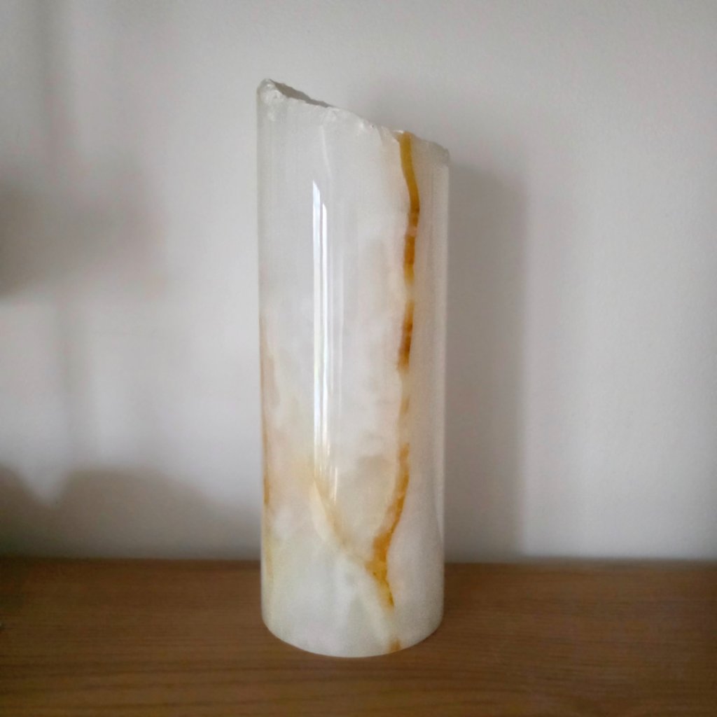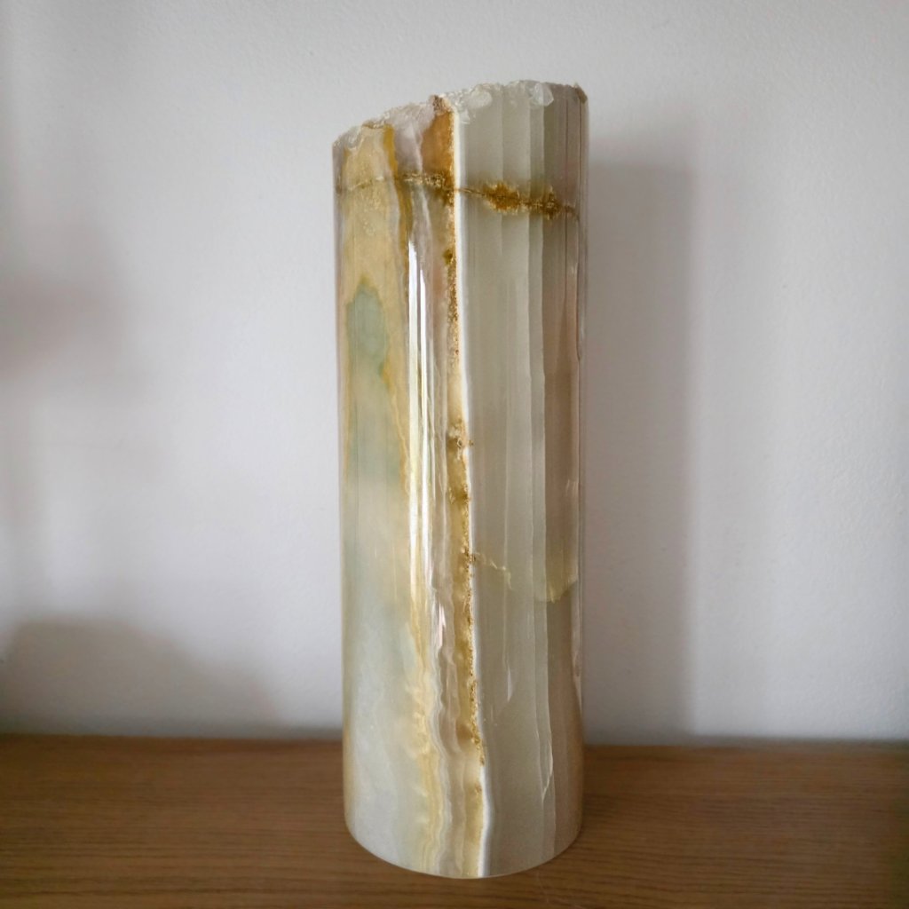 Dekorativní válec z aragonitu výška cca 30 cm, pákistánský onyx, přírodní okraj, váha cca 2,5 kg