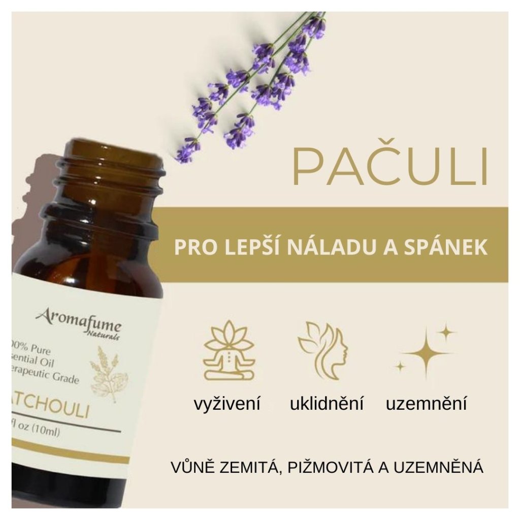 Esenciální oleje pomáhají vytvářet příjemnou atmosféru, podporují relaxaci a zlepšují náladu. Pačuli je ceněné pro svou schopnost uzemnit emoce, navodit klid a dodat pocit stability.