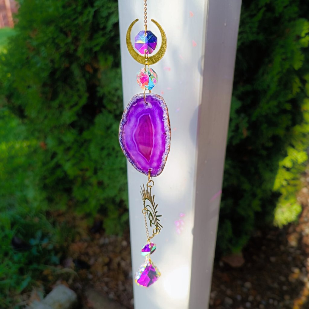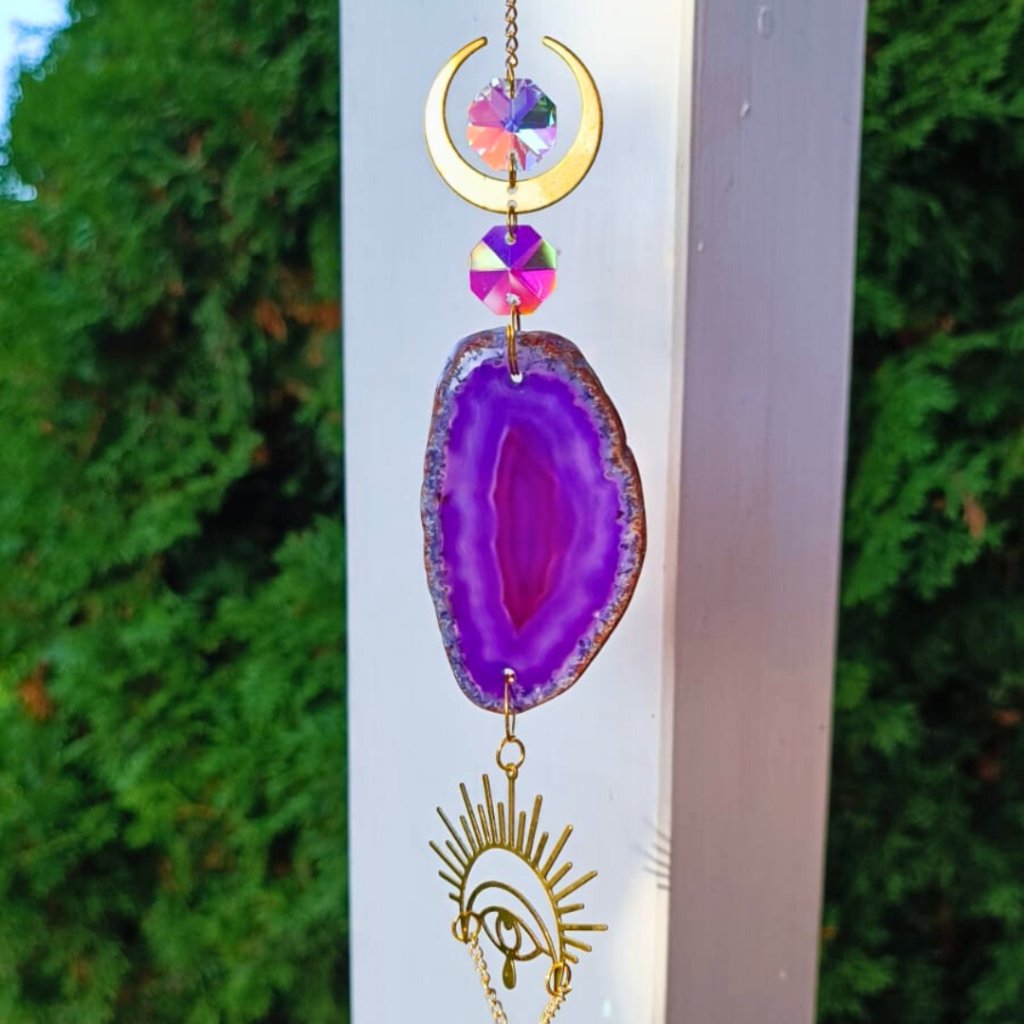 Nechte, ať se světlo opře o fialový achát a probudí ve vašem prostoru klid, vnímavost a jemnou ochranu. Tento lapač není jen dekorací – je připomínkou, že intuice je dar a vnitřní mír začíná u nás. Zavěste ho tam, kde chcete cítit bezpečí, rovnováhu a krásu, která přichází s každým dopadem paprsku.