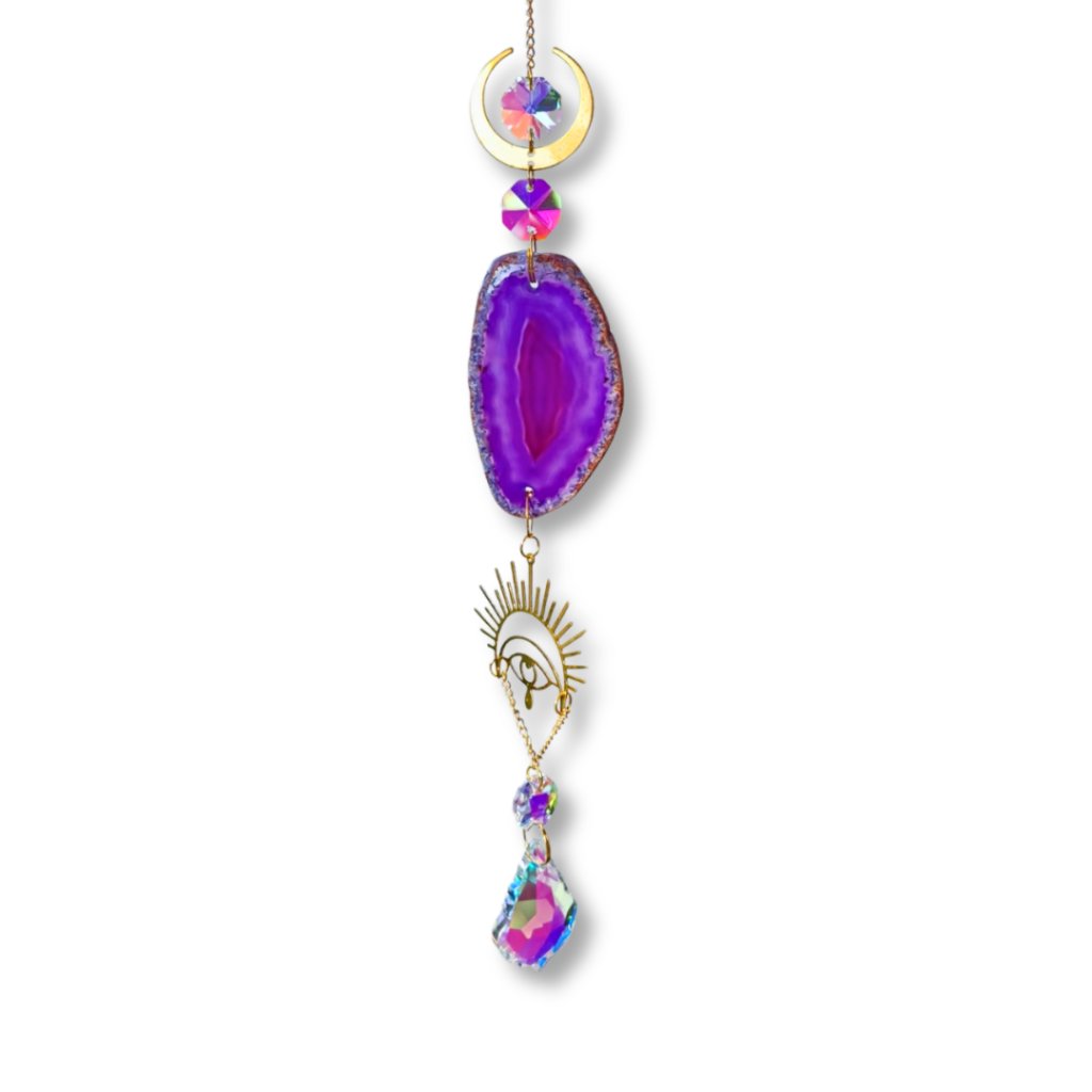 Feng Shui lapač slunce - Ochranné oko Kámen fialový achát, symbol oka, délka 45 cm
