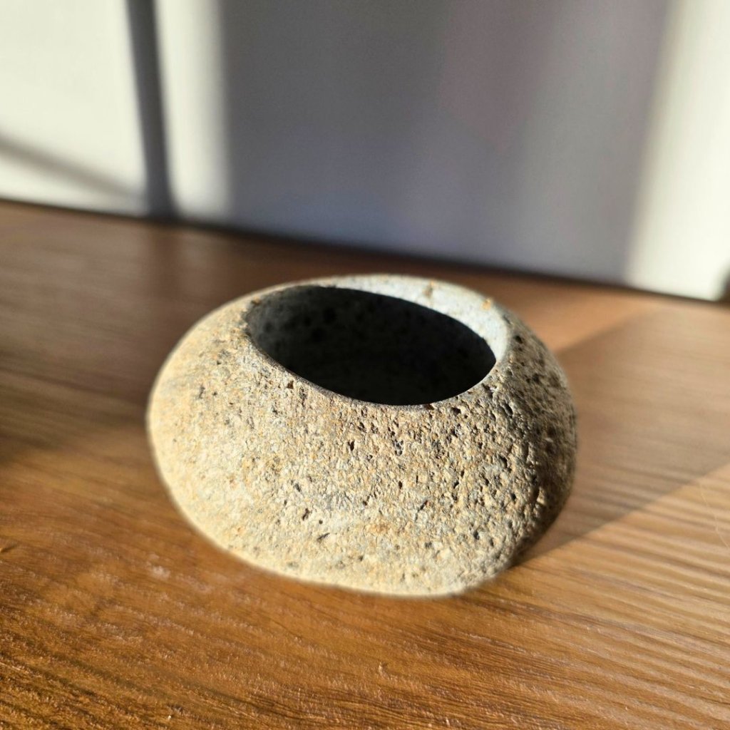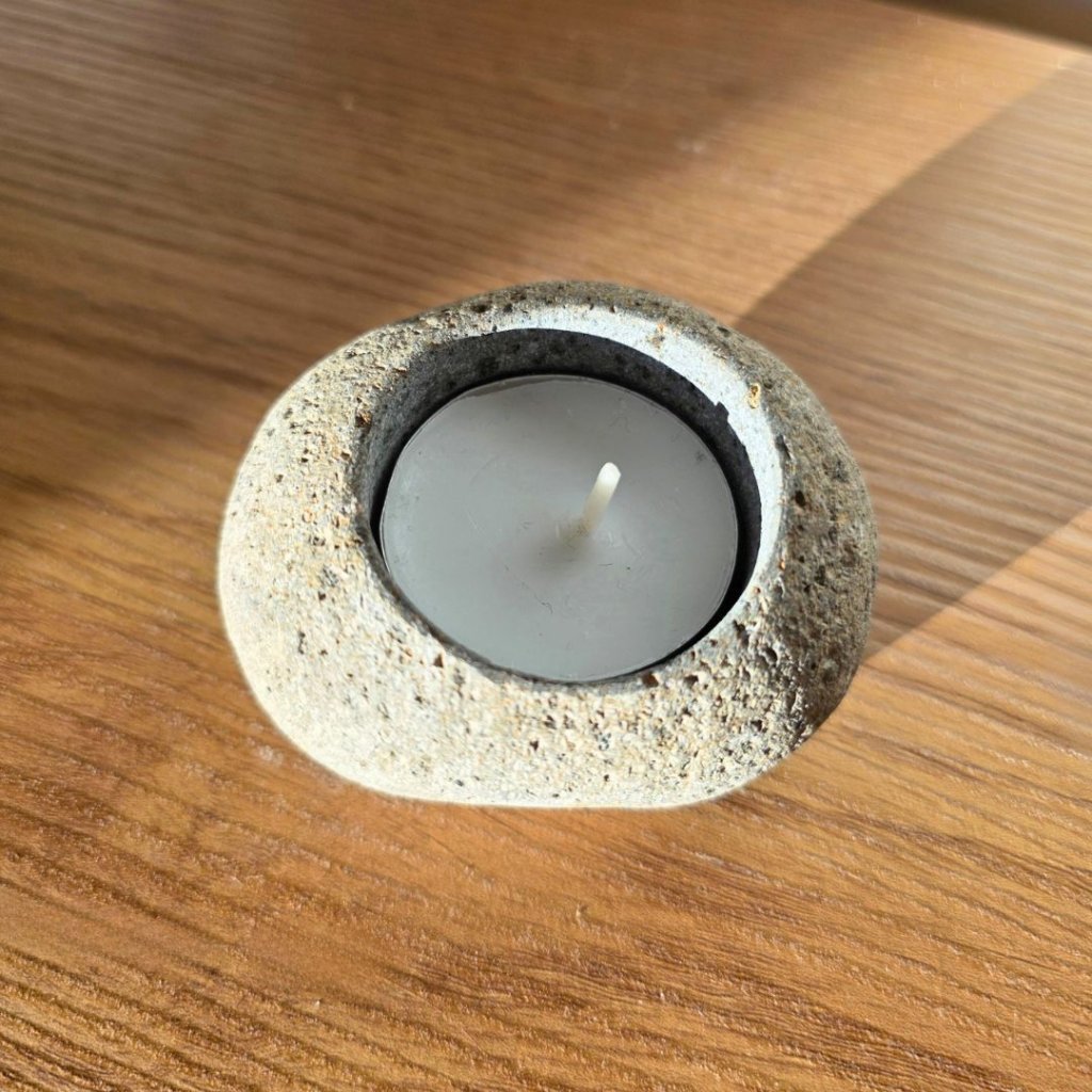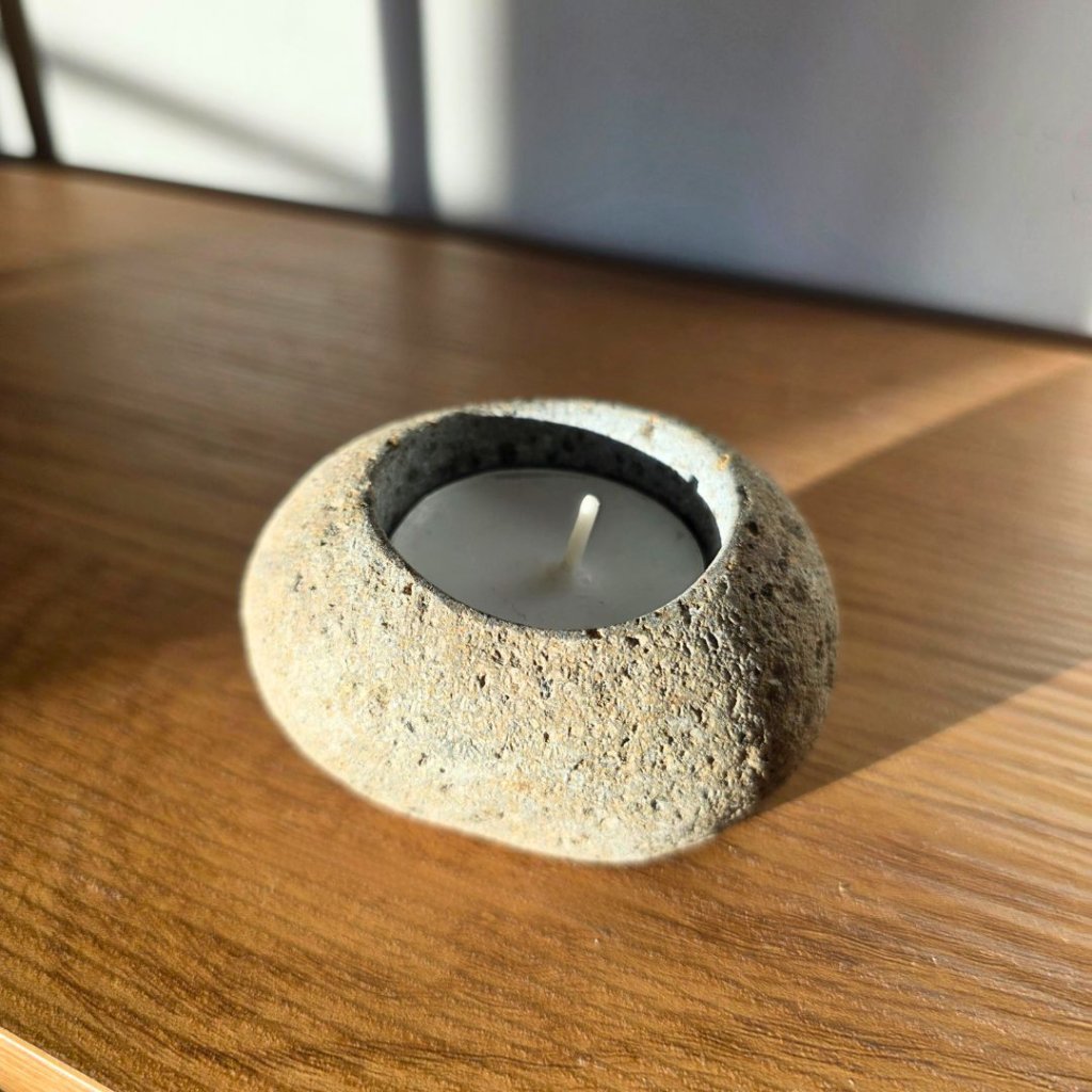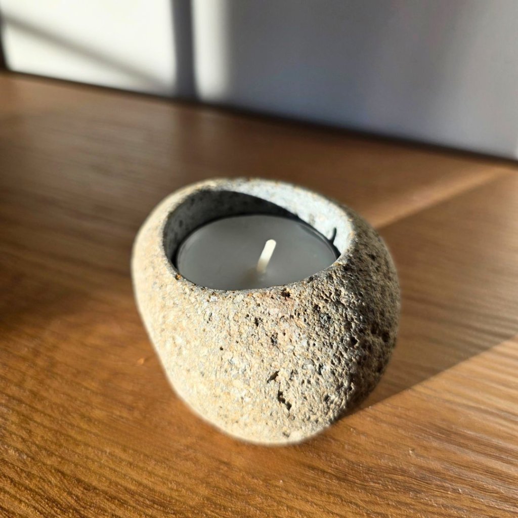 Každý svícen z přírodního říčního kamene je originál vytvořený samotnou přírodou. Kámen byl po dlouhá léta tvarován proudem vody, který mu dal jeho jemně zaoblený tvar, přirozenou strukturu i barevné odstíny. Po opracování vzniká jednoduchý, ale výrazný svícen pro jednu čajovou svíčku, který do prostoru přináší klidnou, zemitou atmosféru.