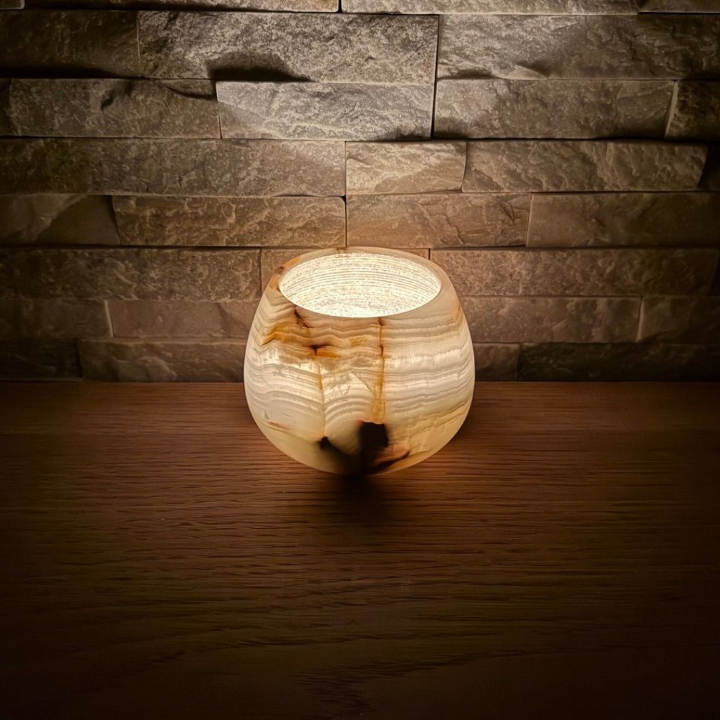 Tento svícen z pákistánského onyxu, i přes drobné nedokonalosti, přináší do vašeho domova kouzlo přírodní krásy a hřejivé světlo. Jeho malé vady nijak neovlivňují jeho schopnost vytvořit útulnou atmosféru a každý kousek je jedinečný. Přidejte do svého interiéru kousek, který vás ochrání před negativními energiemi a zároveň naplní prostor pozitivní a klidnou energií.