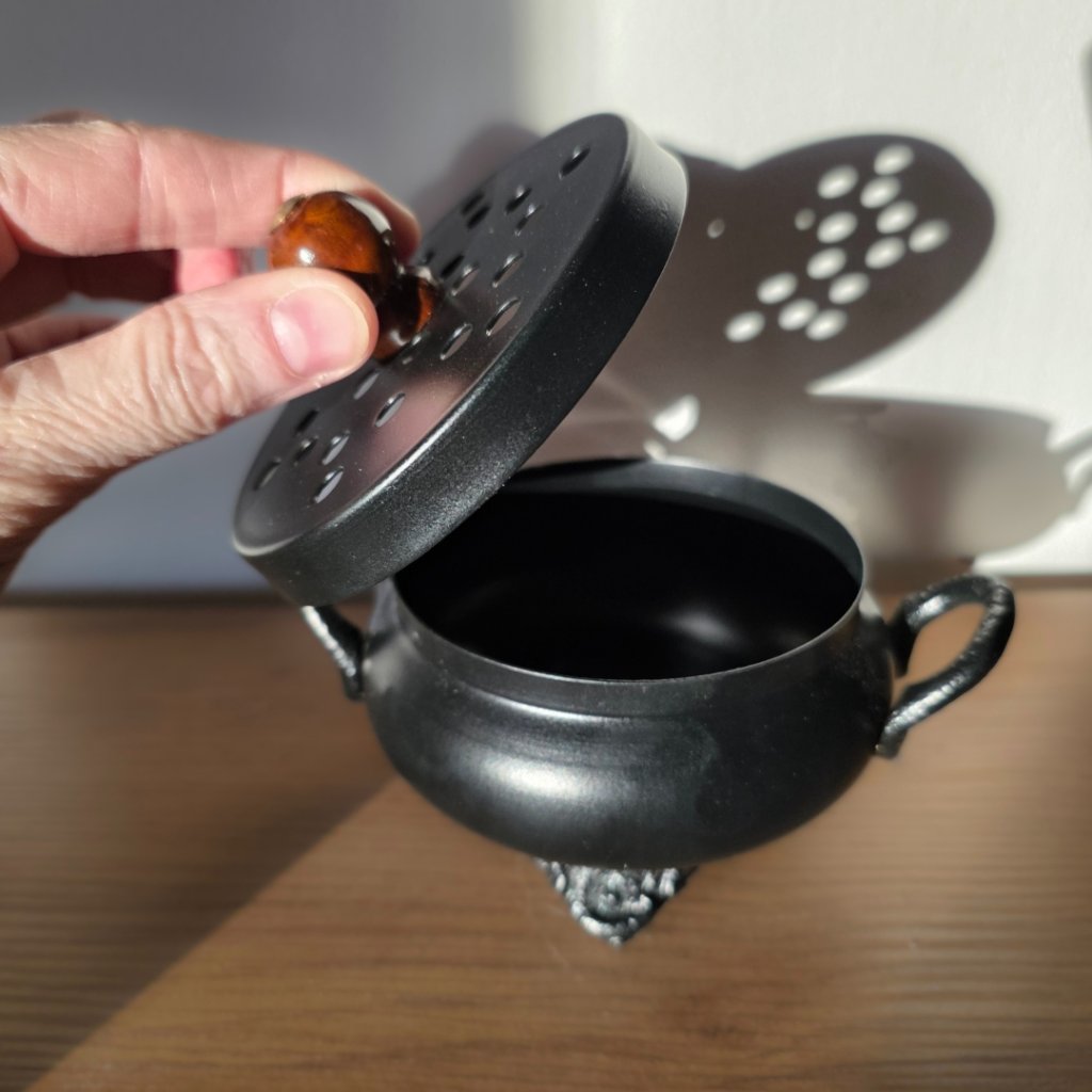 - Má v sobě rituál – tvar kotlíku působí dekorativně a zároveň funkčně a starobyle. Připomíná dobu, kdy se s ohněm, kouřem a vůní pracovalo vědomě a s respektem.