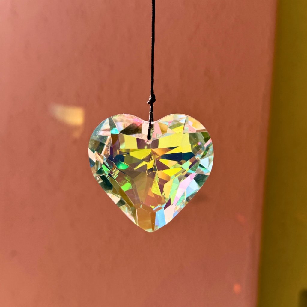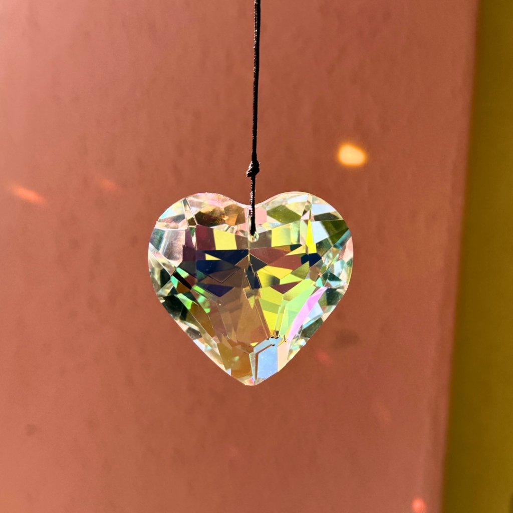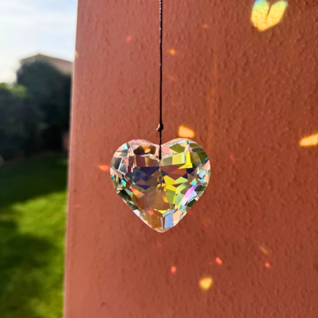 Nechte křišťálové srdce zazářit tam, kde světlo ožívá – a promění se v tanec barev, který pohladí duši. Tento třpytivý amulet lásky a rovnováhy naplní váš prostor jemnou energií, která inspiruje, zklidňuje a spojuje. Ať už ho zavěsíte kamkoli, bude vám každý den připomínat, že světlo – stejně jako láska – vždy najde cestu