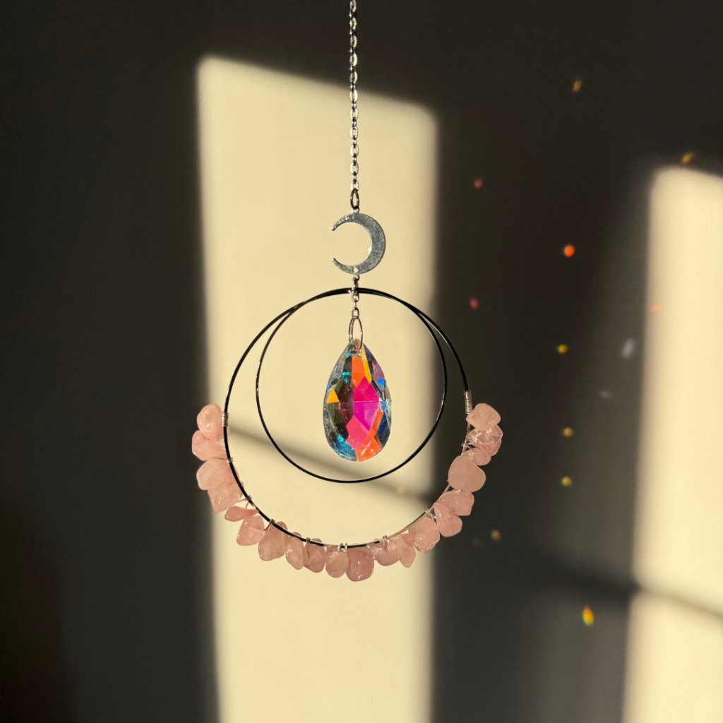 - Harmonizace prostoru – Lapač slunce s růženínem přináší jemnou, uklidňující energii, která napomáhá vytvořit harmonické a láskyplné prostředí.