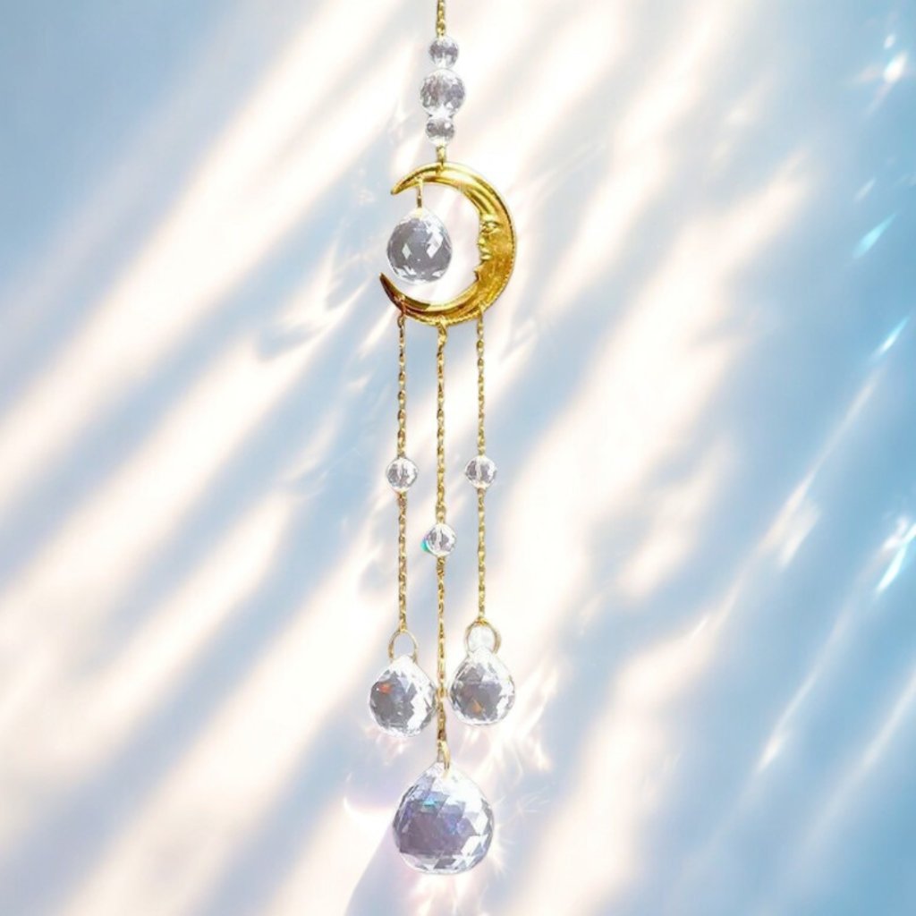 Tento lapač slunce s motivem měsíce symbolizuje intuici, klid a ženskou energii. Spolu s broušenými křišťály, které rozptylují světlo do barevných paprsků, vytváří harmonickou kombinaci pro podporu Feng Shui ve vašem domově. Je ideálním doplňkem pro každé místo, kde chcete posílit rovnováhu, světlo a duchovní energii.