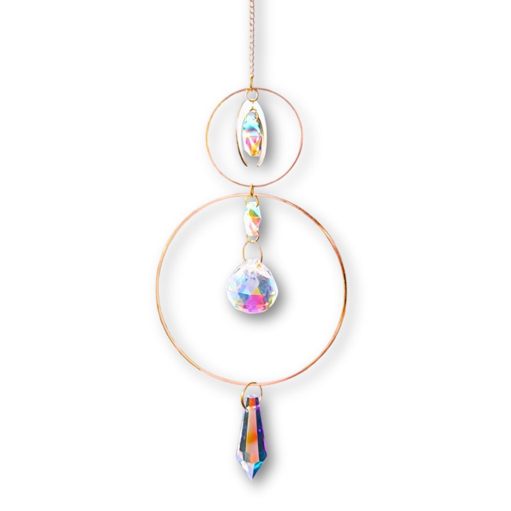 Pozvěte do svého domova kouzlo tance světla a harmonie. Tento lapač slunce vás bude těšit každý den svým jemným pohybem a jiskřením krystalů, které rozzáří prostor a přinesou pocit klidu a rovnováhy. Nechte ho vytvářet krásné momenty, které vám navodí radost a harmonii pokaždé, když kolem projdete.