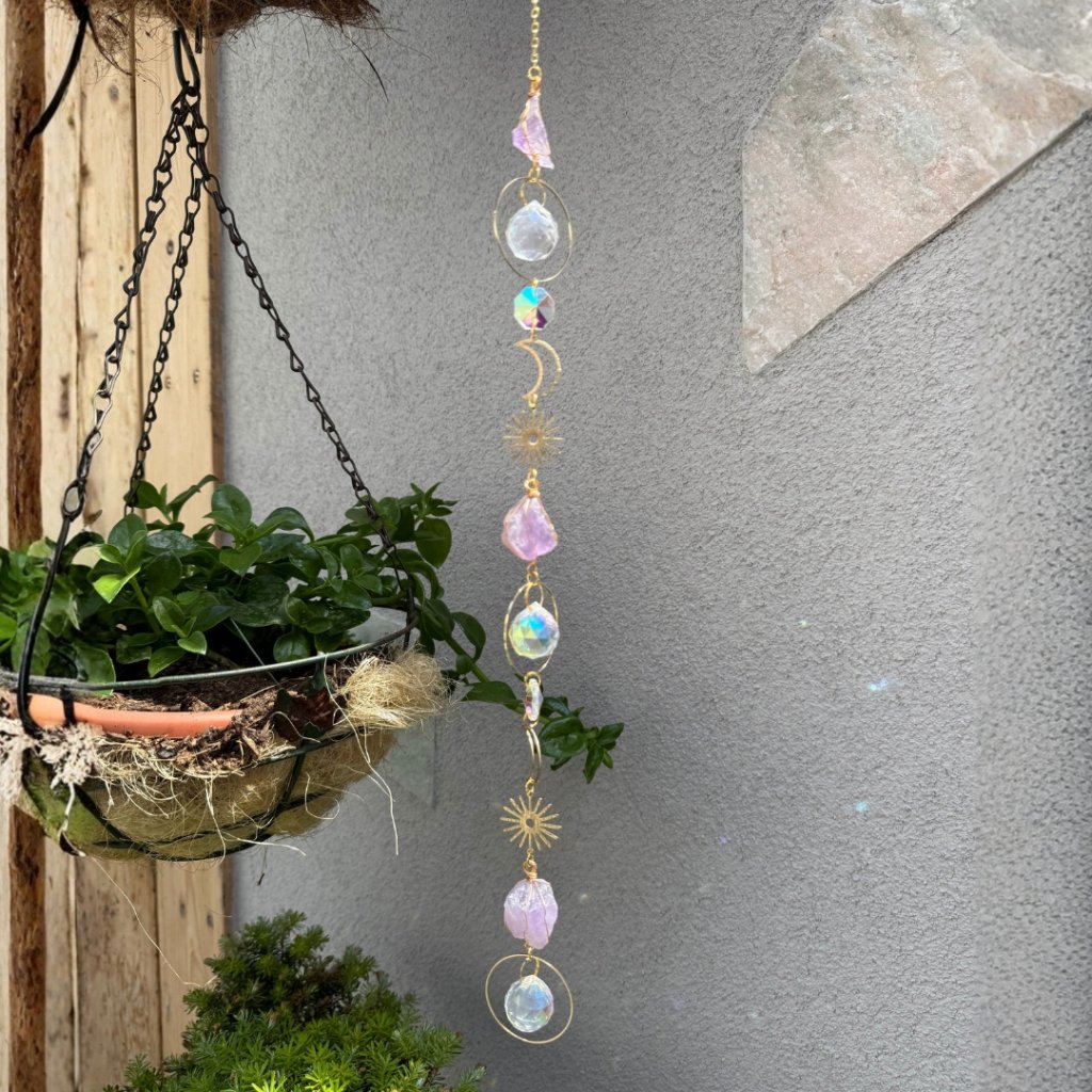 - Energetické vyvážení prostoru: Umístěný na lapači slunce, ametyst zesiluje pozitivní energetický tok a podporuje harmonii v prostoru.