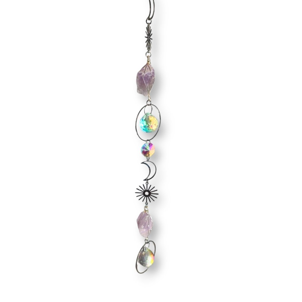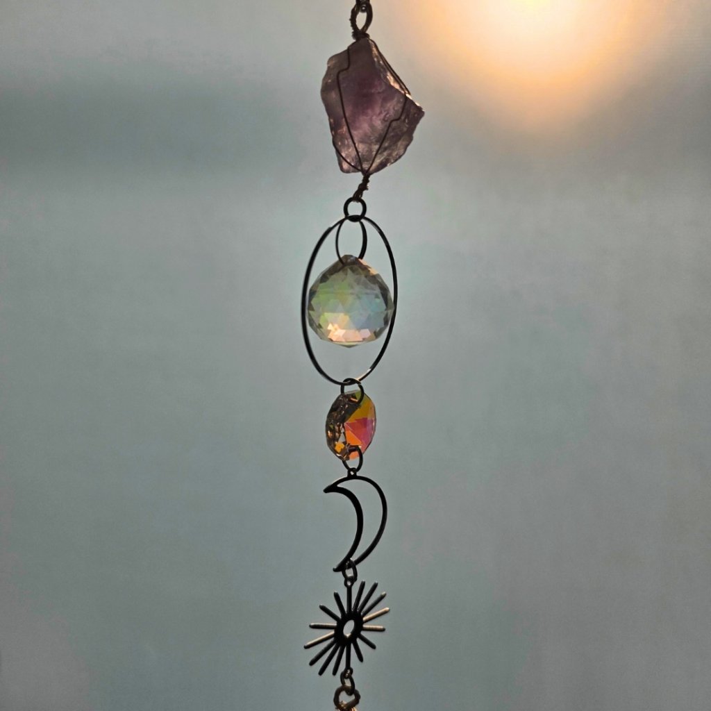 - Energetické vyvážení prostoru: Umístěný na lapači slunce, ametyst zesiluje pozitivní energetický tok a podporuje harmonii v prostoru.