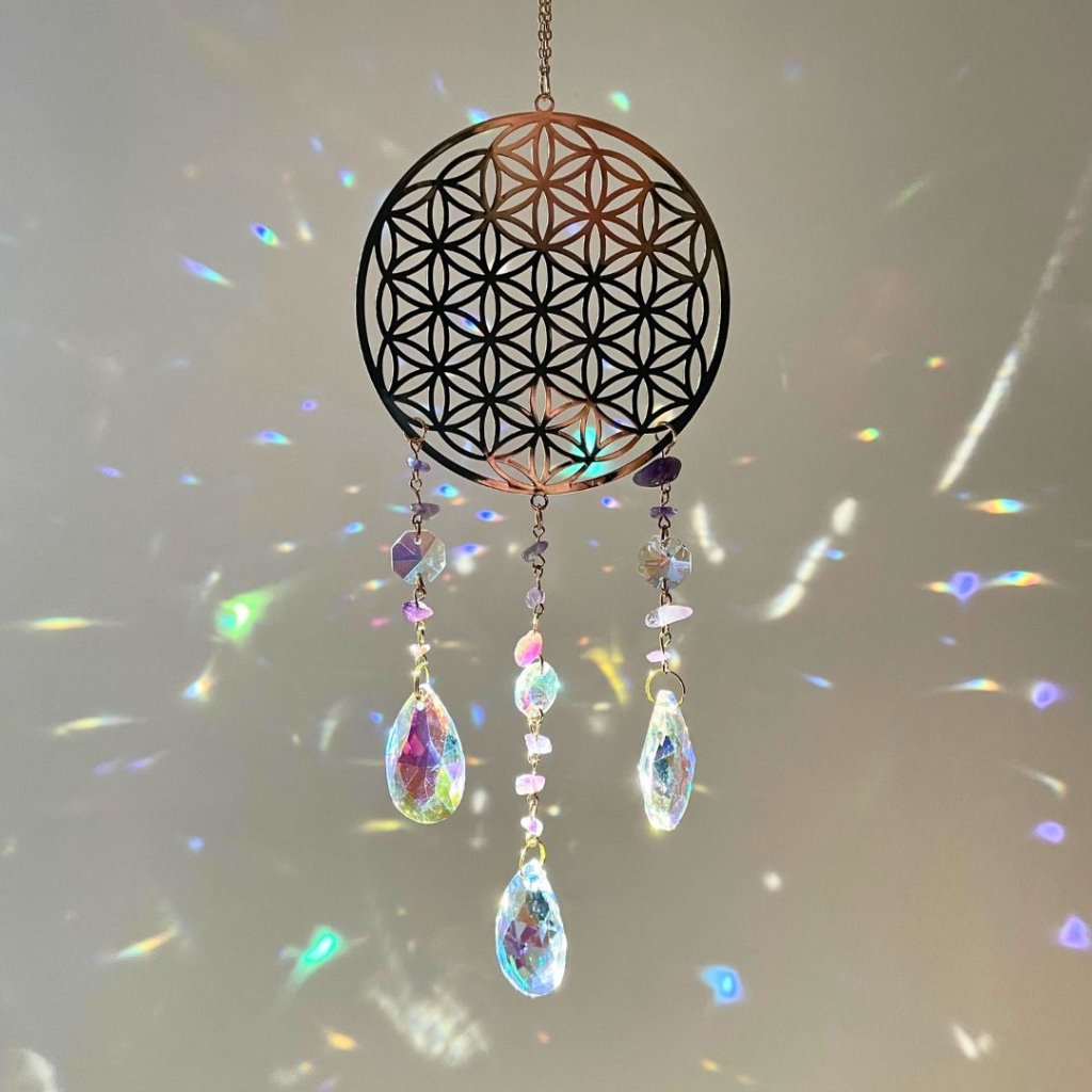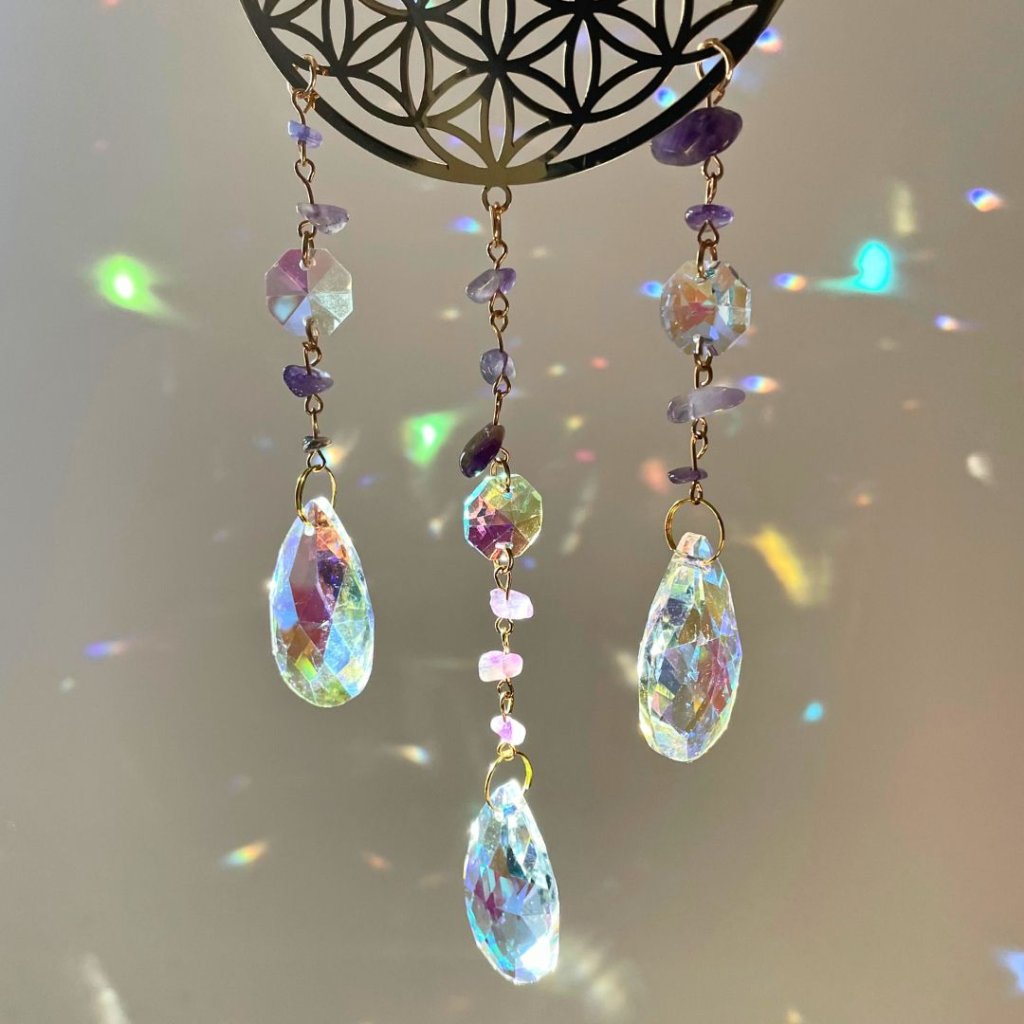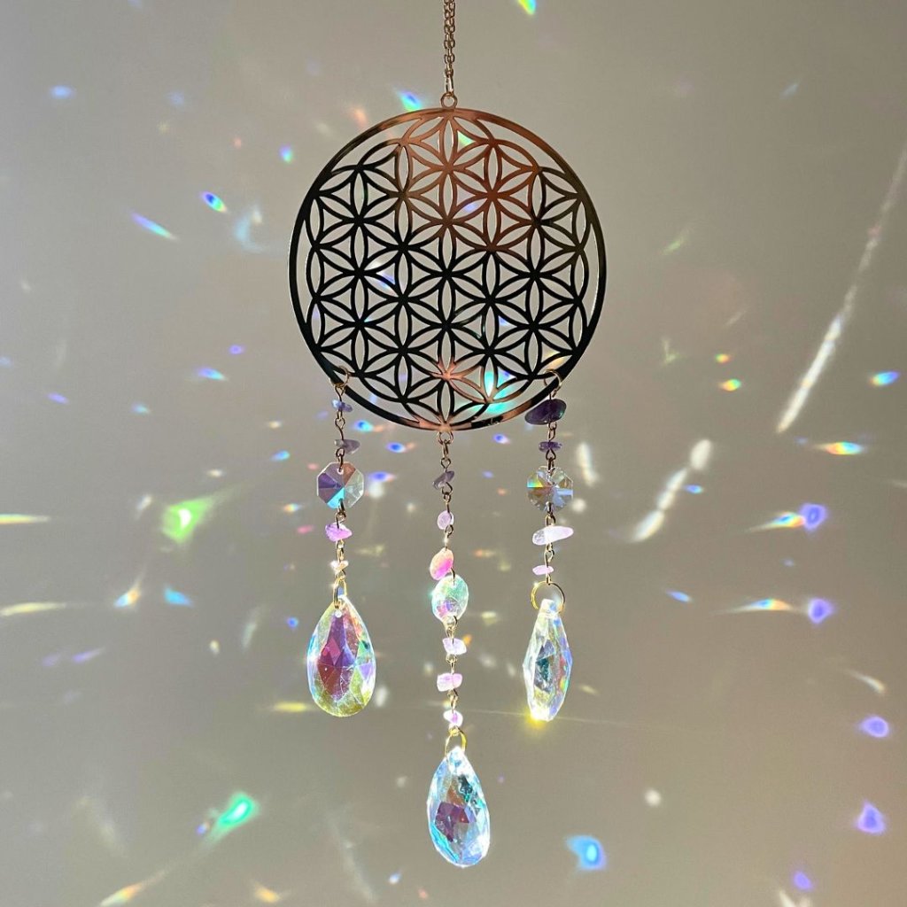 Feng Shui* lapač slunce je nejen esteticky přitažlivý, ale také funkční nástroj pro harmonizaci vašeho domova. Tento produkt je navržen podle principů Feng Shui, což znamená, že jeho umístění a design jsou pečlivě promyšlené, aby přinášely pozitivní energii a vyrovnávaly energetické toky ve vašem prostoru. Lapač obsahuje symbol květu života a ametystové kamínky. Každý prvek na lapači rozptyluje světlo a vytváří tak nádhernou symfonii barev.
