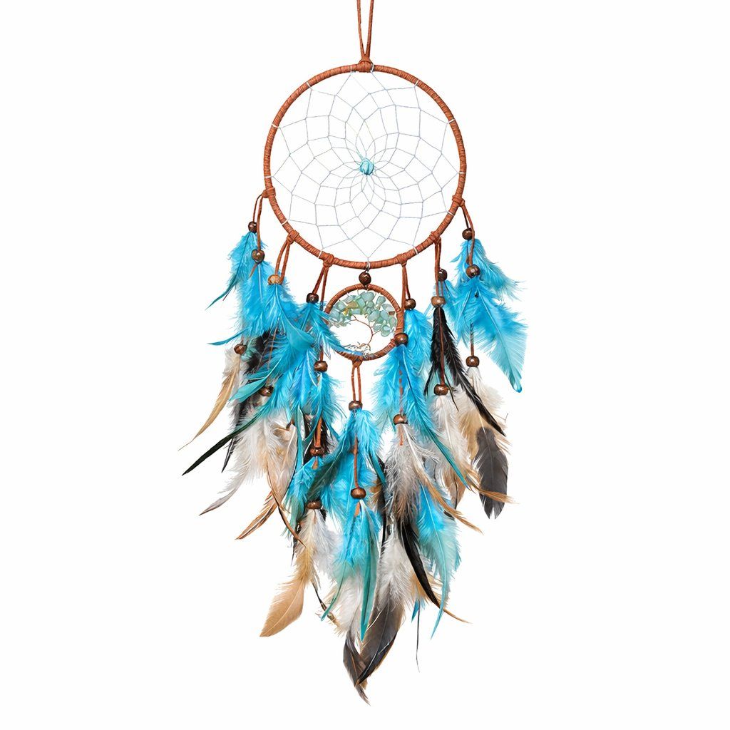 Tento lapač snů spojuje jemné peří, tyrkysové tóny, strom života ze zeleného avanturínu a tradiční kruh se sítí ve tvaru mandaly, která je pro lapače snů typická. Podle tradice má lapač snů během noci zachytávat rušivé sny a do spánku pouštět jen ty dobré. Strom života ze zeleného avanturínu tuto symboliku doplňuje motivem stability, harmonie a vnitřního klidu.