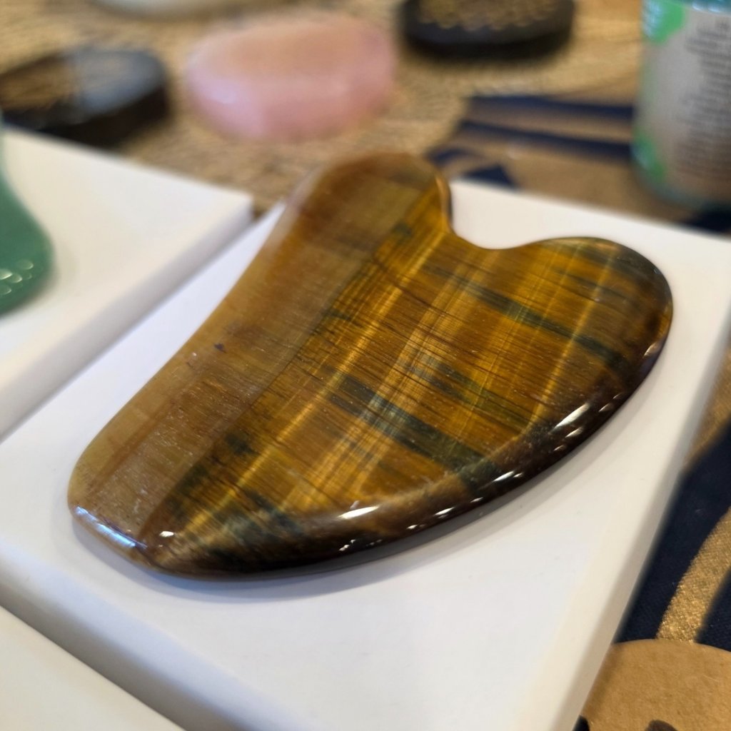 *Gua Sha je prastará čínská léčebná technika, která nabízí přirozený způsob, jak zlepšit vaše zdraví a pohodu. Používáním speciálního masážního kamene, jako je gua sha z tygřího oka, můžete stimulovat prokrvení pokožky, uvolnit energii (chi) a podpořit přirozené regenerační procesy těla. Tato technika pomáhá uvolňovat toxiny, zmírňovat nepravidelnosti a obnovovat zdravý a přirozený lesk pokožky.