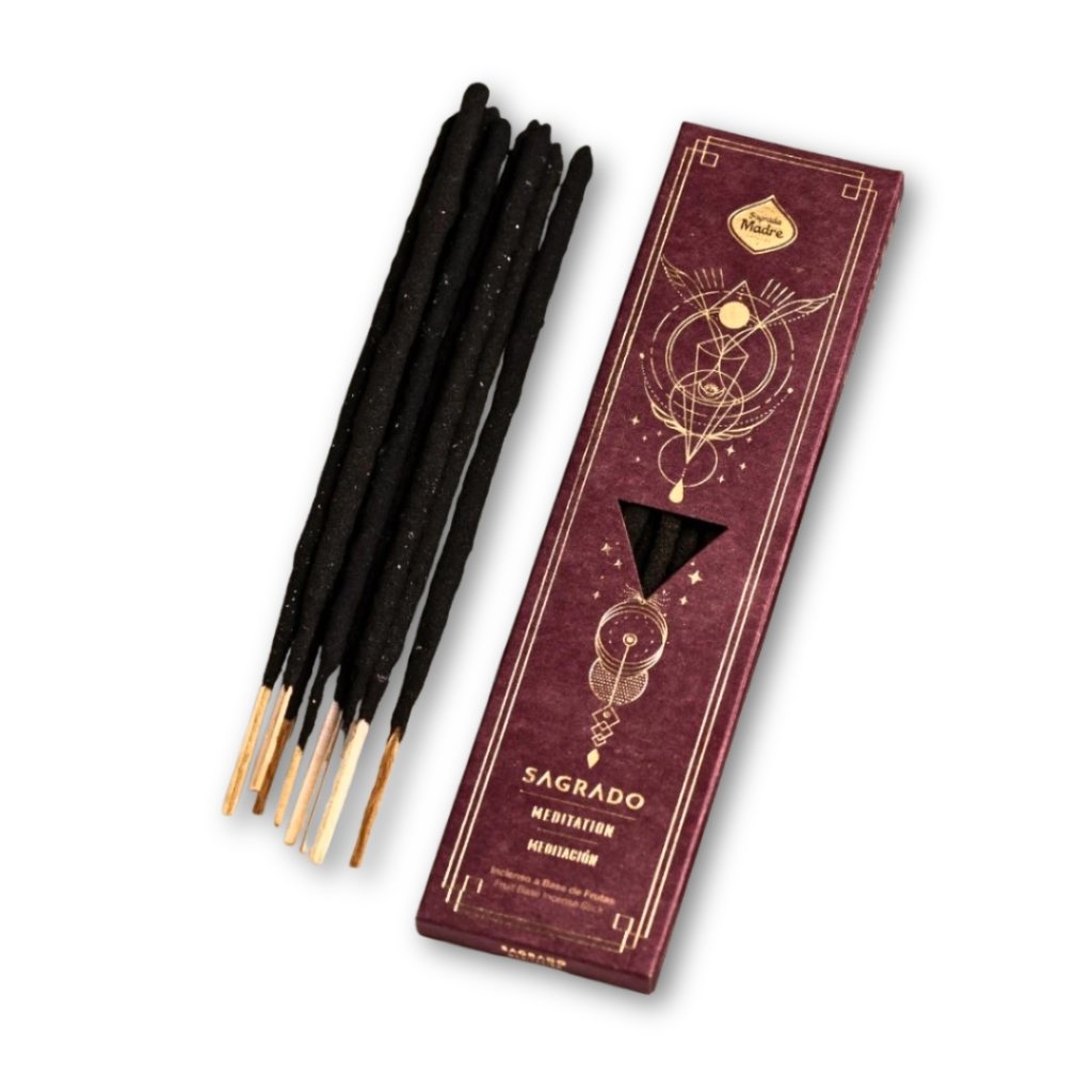 - Posvátné vonné tyčinky meditace – prémiová sada šesti tyčinek s jemnou vůní kadidla, vytvořených speciálně pro meditaci a ztišení. Pomáhají zpomalit dech, uklidnit mysl a navodit klidnou atmosféru bez vtíravosti.