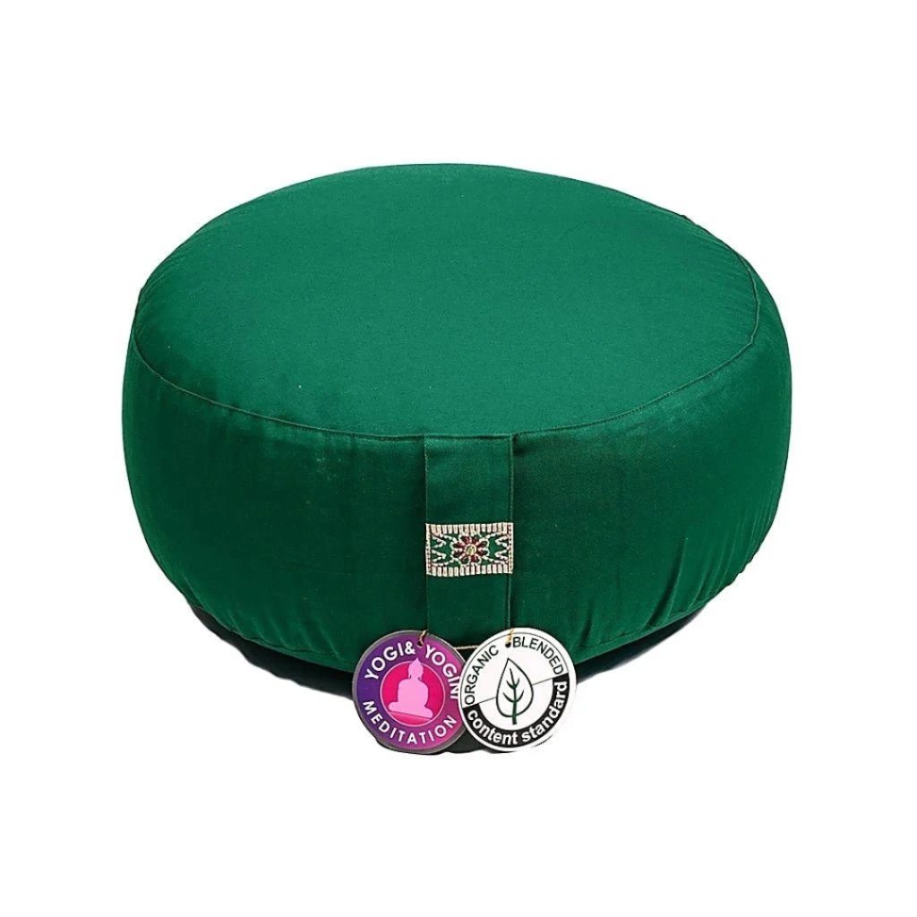 - Meditační polštář zelený – bavlněný polštář s pohankovou výplní, který poskytuje stabilní a pohodlný sed při meditaci, dechových cvičeních nebo tichém sezení. Výšku lze upravit podle potřeby.