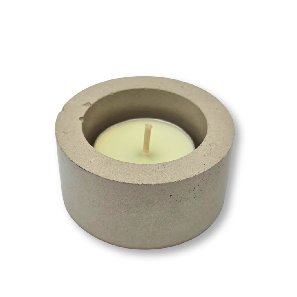 Minimalistický betonový svícen na čajové svíčky, průměr 4 cm, ruční výroba v ČR