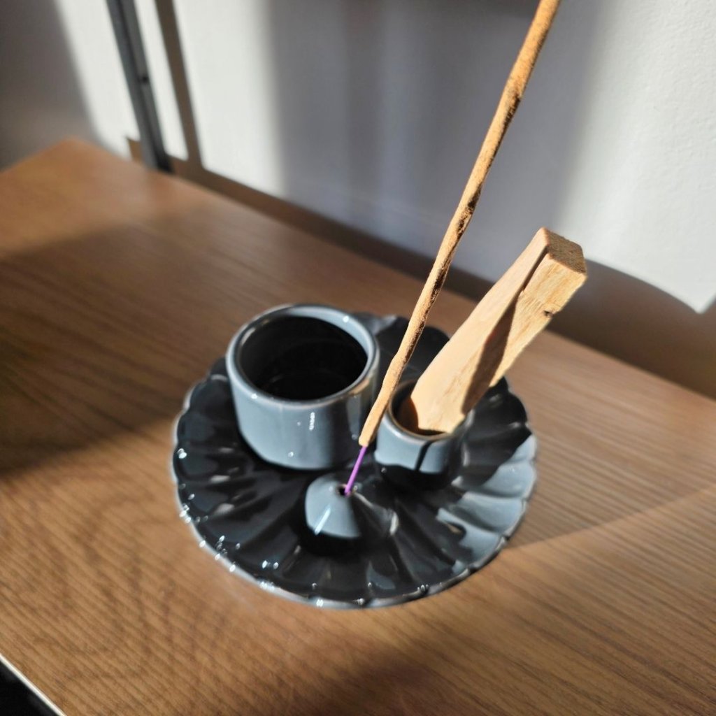- Pohodlné používání – stojánek má vše, co člověk při vykuřování potřebuje, od místa na Palo Santo až po otvor pro vonnou tyčinku.