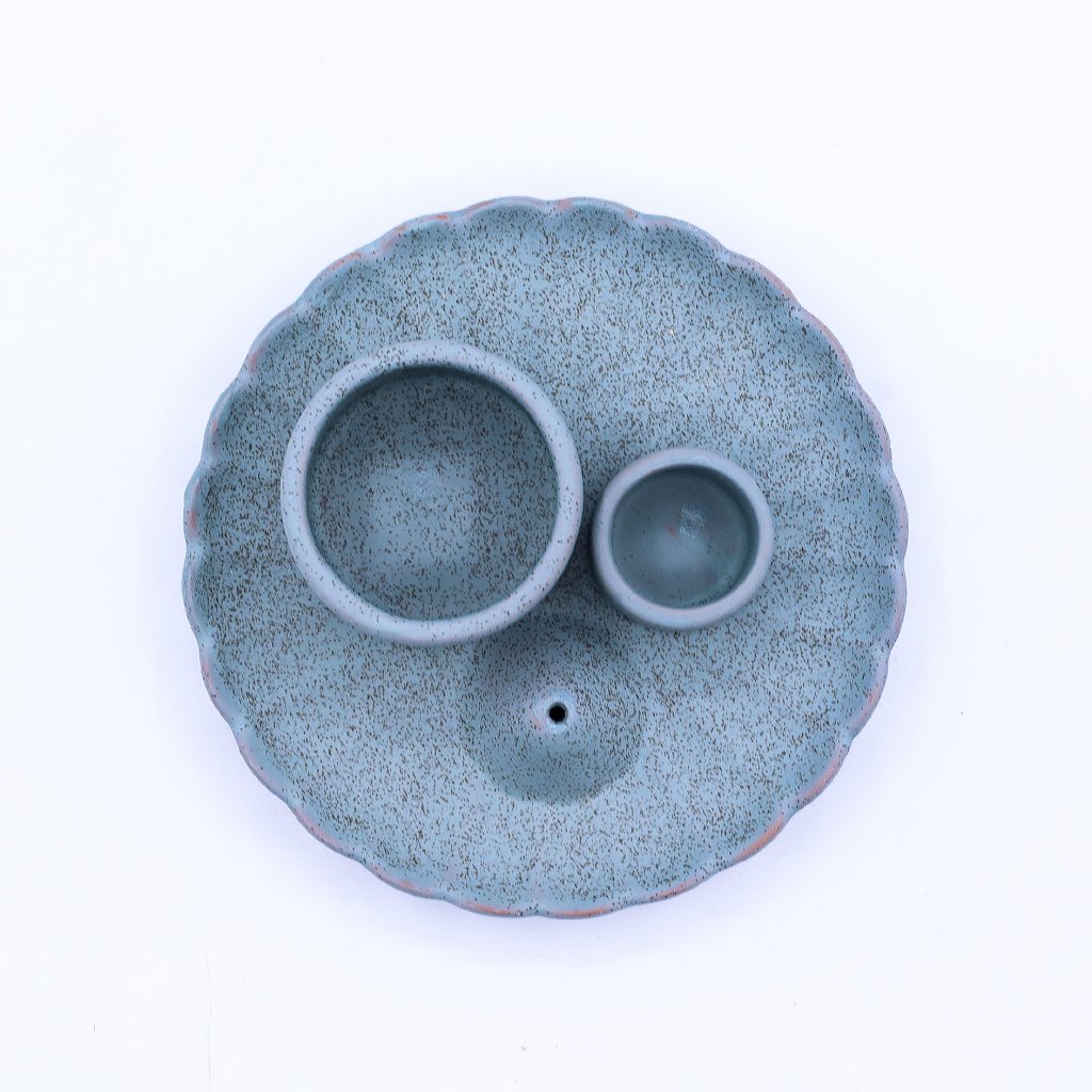 Tento keramický stojánek na vykuřovadla v matné světle modré barvě s dekorem hnědých semínek je dokonalým doplňkem pro každodenní rituály. Stojánek je vyroben z keramiky s matným povrchem a má průměr přibližně 13 cm. Nabízí dostatečnou stabilitu a bezpečí při pálení dřívka Palo Santo, bílé šalvěje i vonných tyčinek. Díky svému decentnímu designu se snadno sladí s jakýmkoli interiérem.