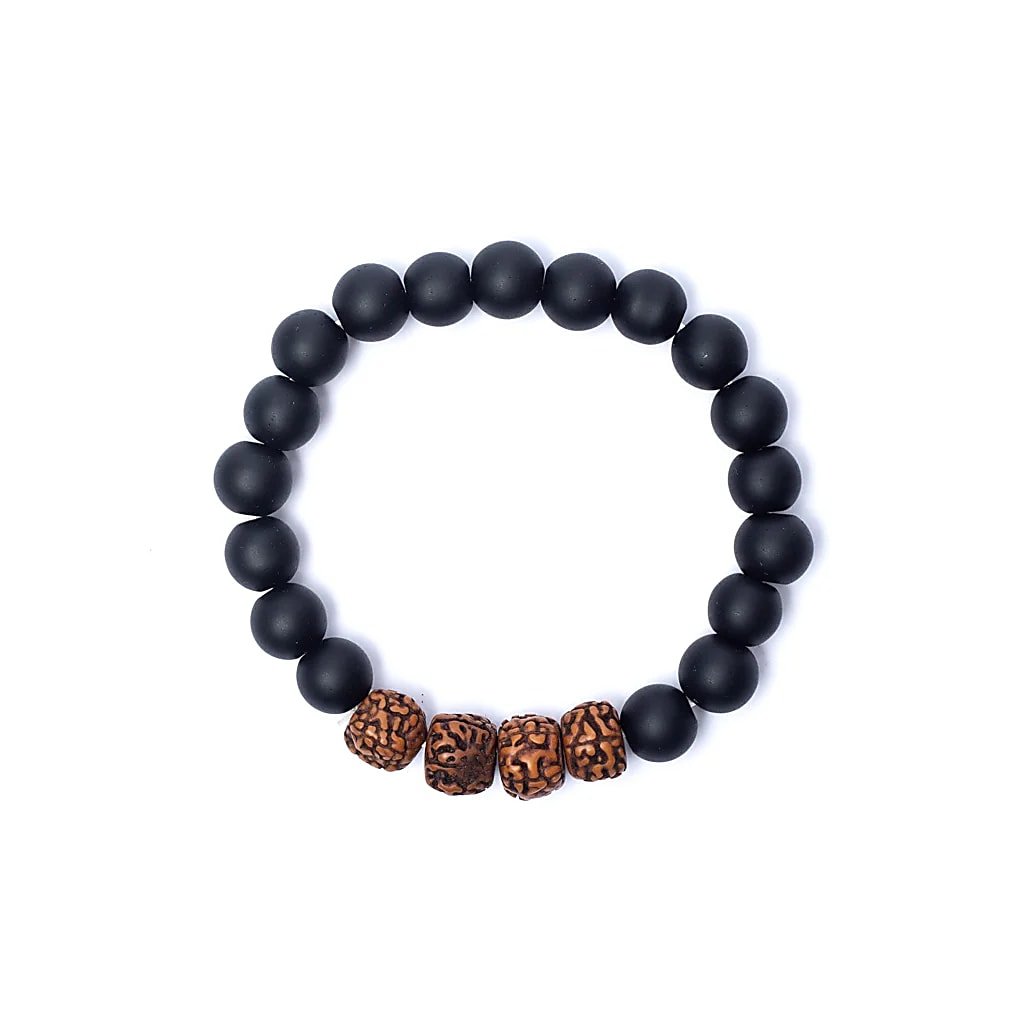 Náramek z onyxu a semínek rudraksha korálky 10 mm, černý onyx, pružné zapínání