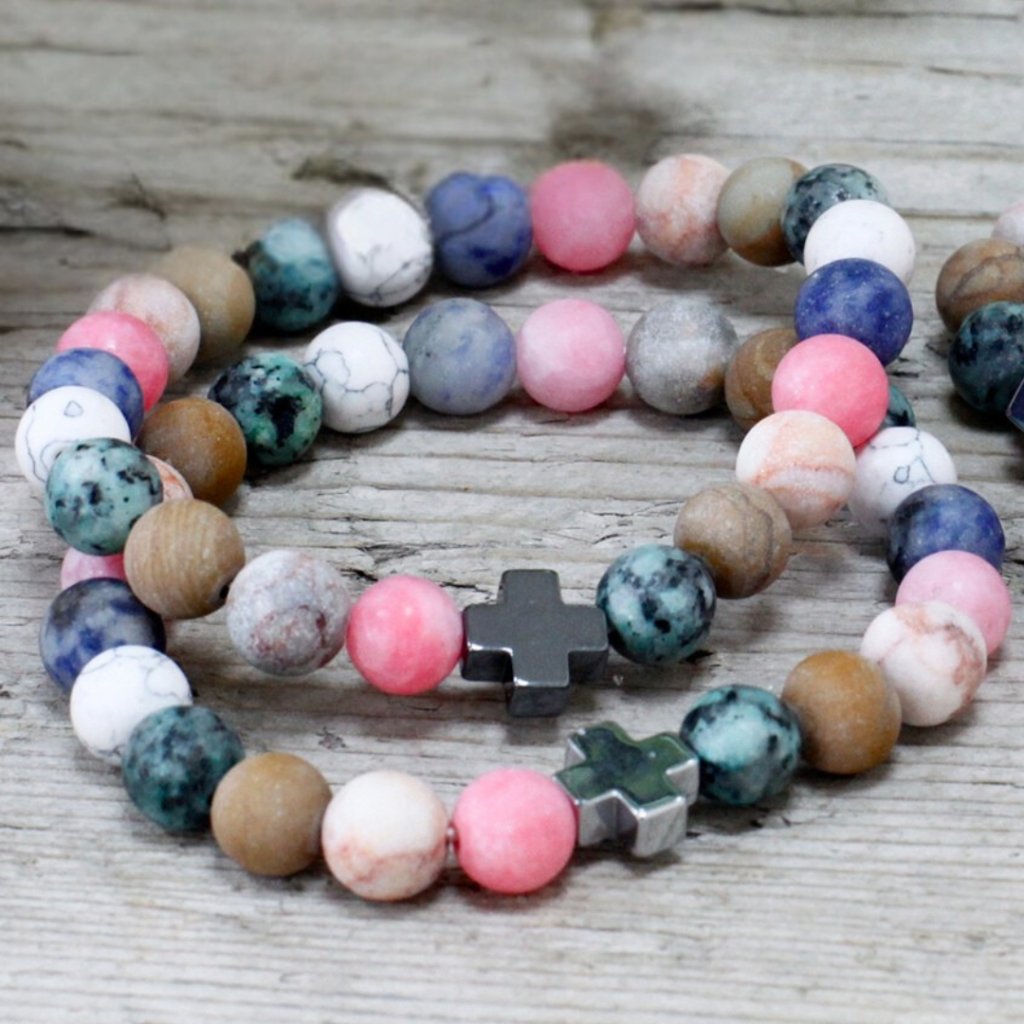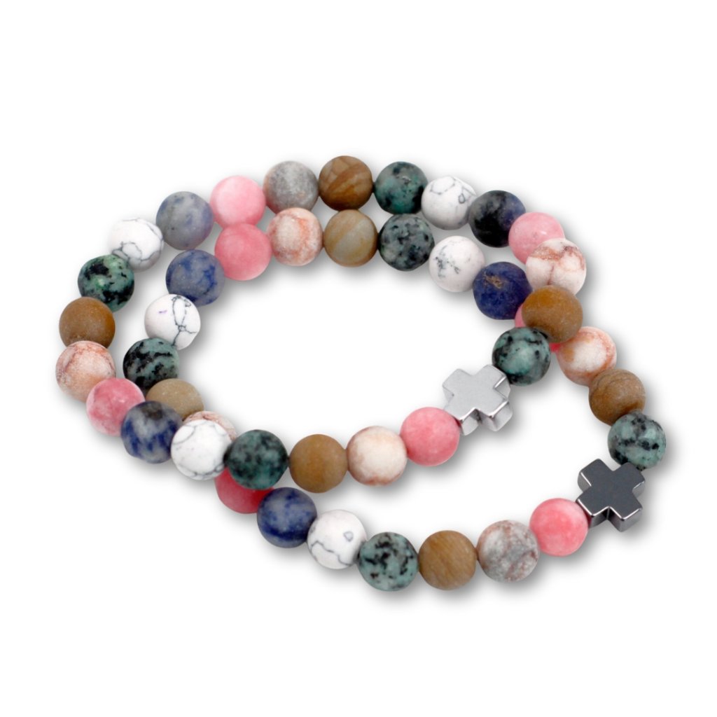 Dva náramky, dvě srdce, jedno spojení. Tato sada náramků přátelství je symbolem blízkosti, podpory a vzájemné důvěry. Kombinuje jemné odstíny přírodních minerálů v harmonické shodě, která připomíná, že každý vztah je jedinečný a krásný právě svou rozmanitostí. Díky elastickému provedení (cca 19–23 cm) se pohodlně přizpůsobí většině zápěstí a příjemně se nosí po celý den. Náramky jsou navrženy tak, aby se nosily v páru – jeden pro vás, druhý pro člověka, který je vám blízký. Spojuje je křížek, symbol rovnováhy, víry a stálosti. Ať už jste spolu, nebo daleko od sebe, připomenou vám, že spojení mezi vámi zůstává.