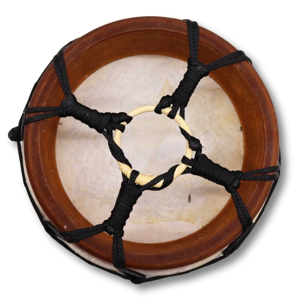 - Hluboký a čistý tón – kombinace suarového dřeva a kozí blány dává zvuku přirozenou sílu a teplý charakter.