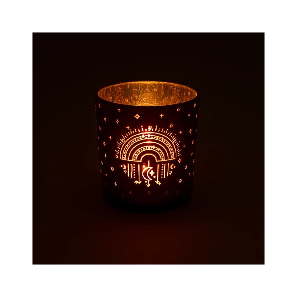 Představte si paprsky večerního slunce po dešti, jak se zlomí v kapkách vody a vytvoří jemnou duhu. Přesně takový dojem navodí tento svícen – když do něj vložíte svíčku, její světlo projasní motiv duhy a celá sklenice začne zářit jemnou, nadějeplnou energií.