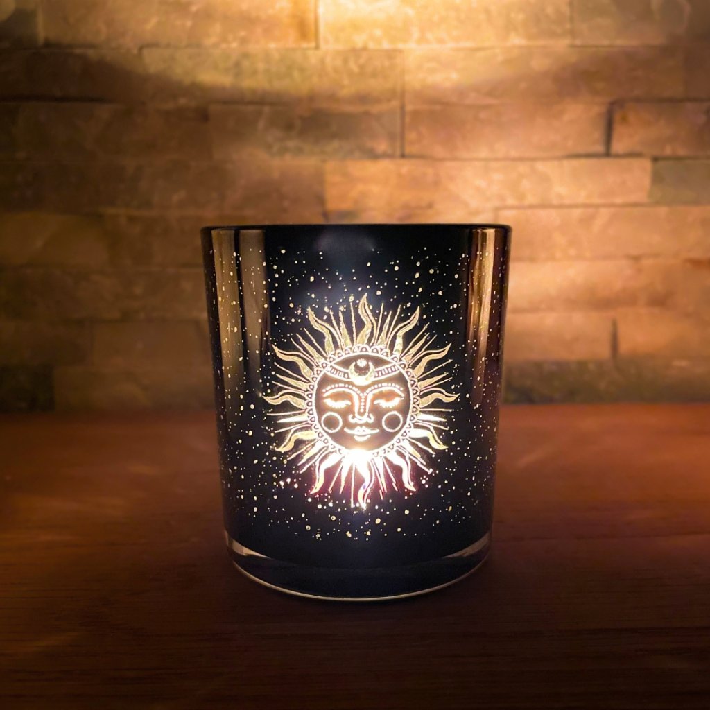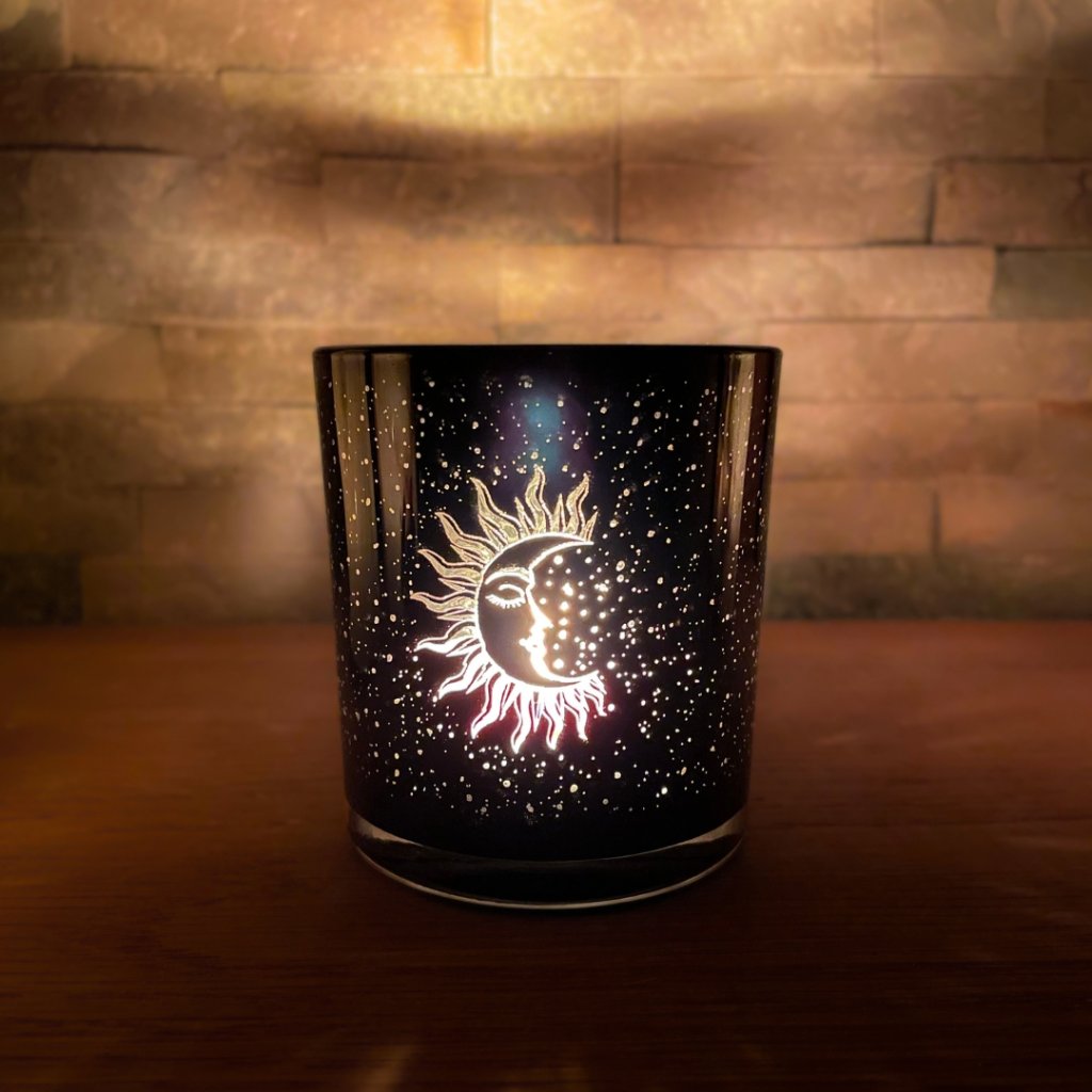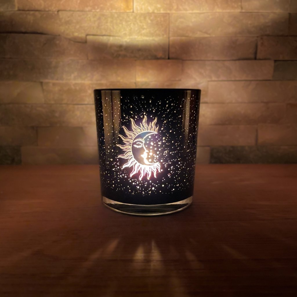 SKLENICE NA VOTIVNÍ A ČAJOVÉ SVÍČKY SE SLUNCEM A MĚSÍCEM