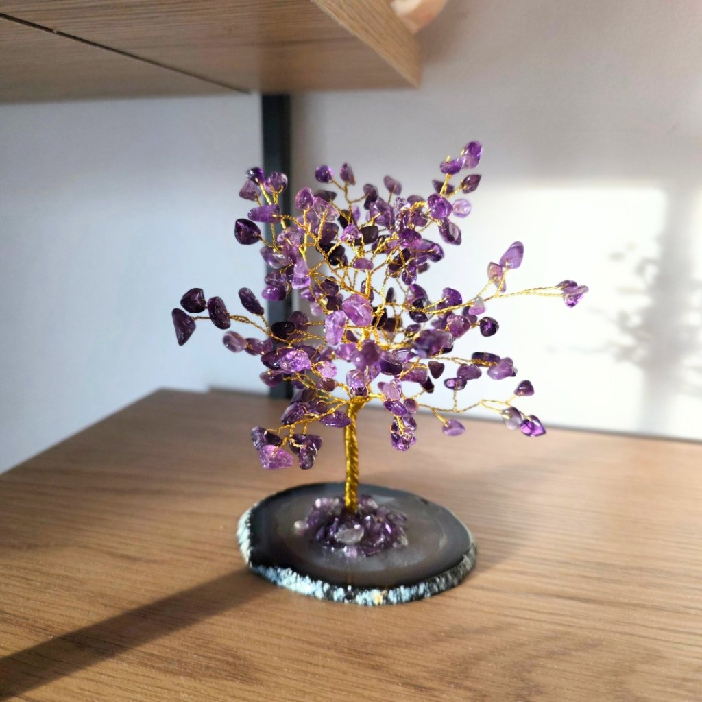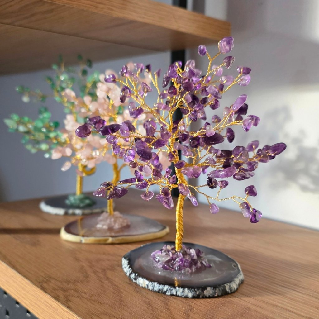 Stromeček štěstí přináší do prostoru pocit rovnováhy, hojnosti a klidu. Pomáhá zharmonizovat energii domova a připomíná, že štěstí se dá pěstovat stejně jako strom – s trpělivostí a péčí. Může být krásným doplňkem do ložnice, pracovny nebo obývacího pokoje, ale i smysluplným dárkem pro někoho, komu chcete popřát klid a sílu. Ametyst tomuto stromečku dodává jemnou ochrannou energii, která podporuje soustředění a vnitřní pohodu.
