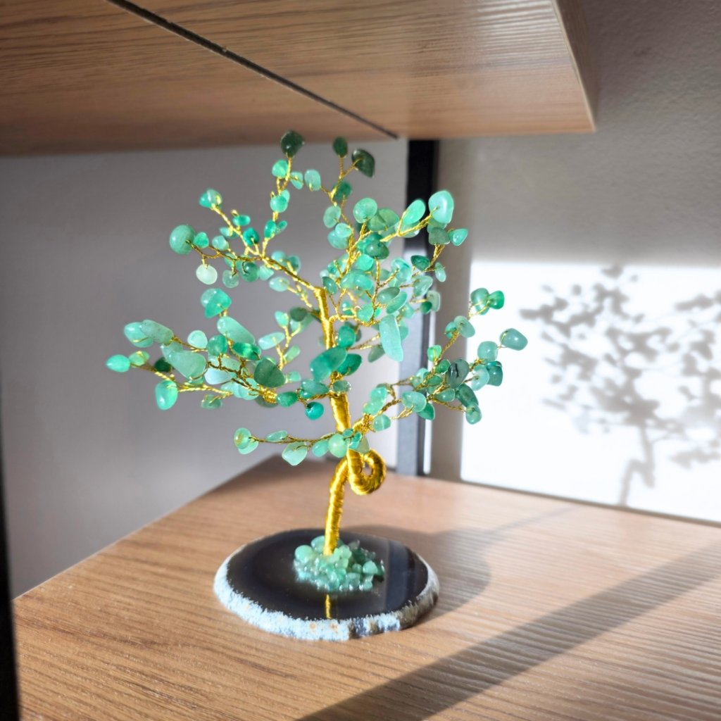 Stromeček štěstí přináší do prostoru pocit rovnováhy, klidu a štěstí. Pomáhá zharmonizovat energii domova a připomíná, že štěstí se dá pěstovat stejně jako strom s trpělivostí a péčí. Může být krásným doplňkem do ložnice, pracovny nebo obývacího pokoje, ale i smysluplným dárkem pro někoho, komu chcete popřát klid a sílu. Avanturín tomuto stromečku dodává svěží energii, která podporuje odvahu, sebedůvěru a schopnost přitahovat hojnost.