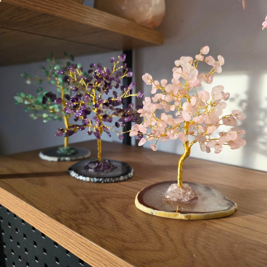 Stromeček štěstí přináší do prostoru pocit lásky, jemnosti a klidu. Pomáhá zjemnit atmosféru domova a připomíná, že laskavost a pochopení jsou silou, která uzdravuje. Může být krásným doplňkem do ložnice, obývacího pokoje nebo prostoru, kde odpočíváte, ale i smysluplným dárkem pro někoho, komu chcete popřát otevřené srdce a harmonii. Růženín tomuto stromečku dodává něžnou energii, která podporuje sebelásku, empatii a porozumění.