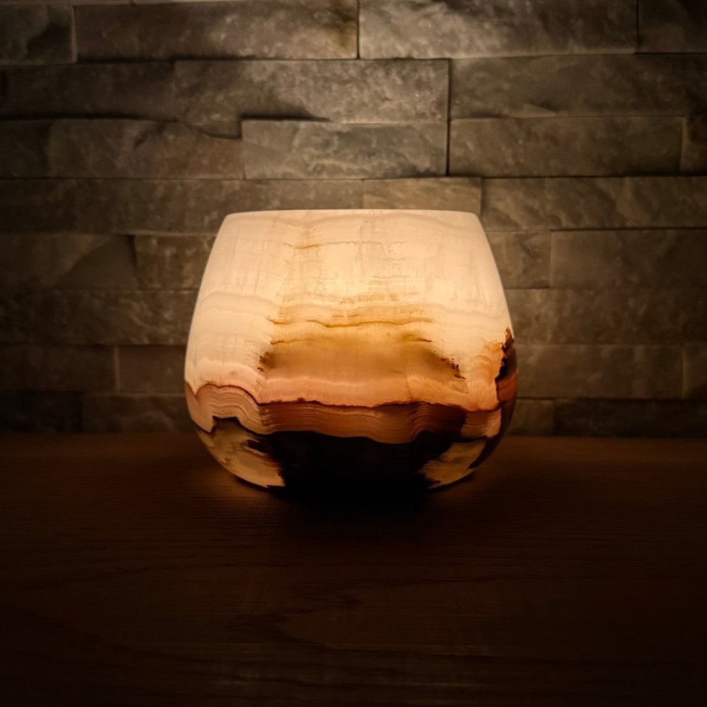 - Krásný ve dne, ještě hlubší večer – denní světlo ukáže kresbu kamene, zapálená svíčka jí přidá hloubku, teplo a klidnou atmosféru.