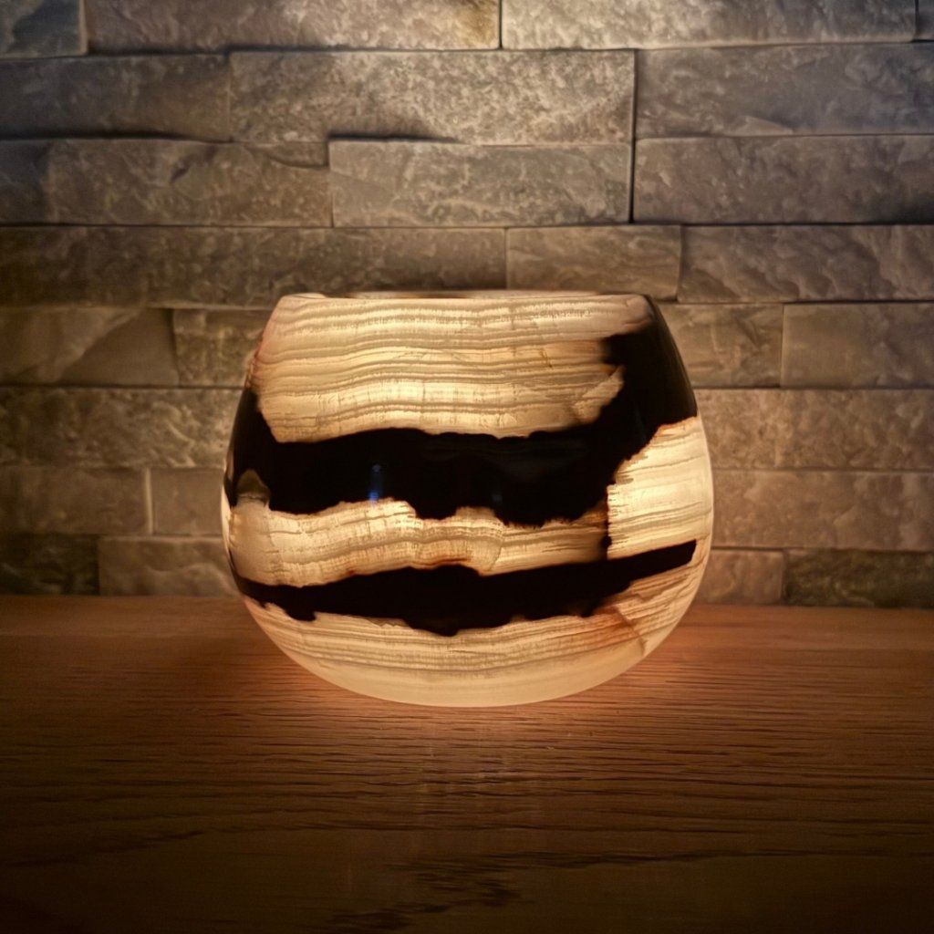 - Krásný ve dne, ještě hlubší večer – denní světlo ukáže kresbu kamene, zapálená svíčka jí přidá hloubku, teplo a klidnou atmosféru.