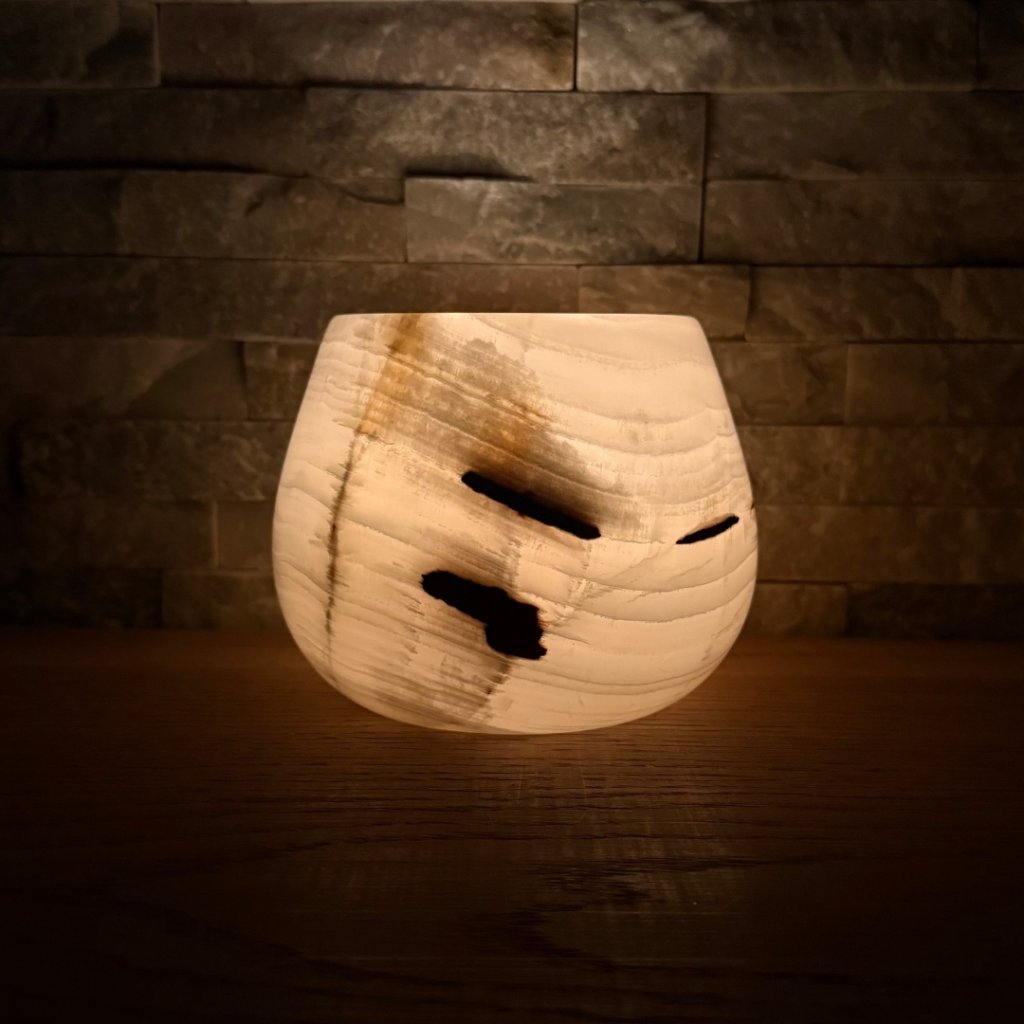 - Krásný ve dne, ještě hlubší večer – denní světlo ukáže kresbu kamene, zapálená svíčka jí přidá hloubku, teplo a klidnou atmosféru.