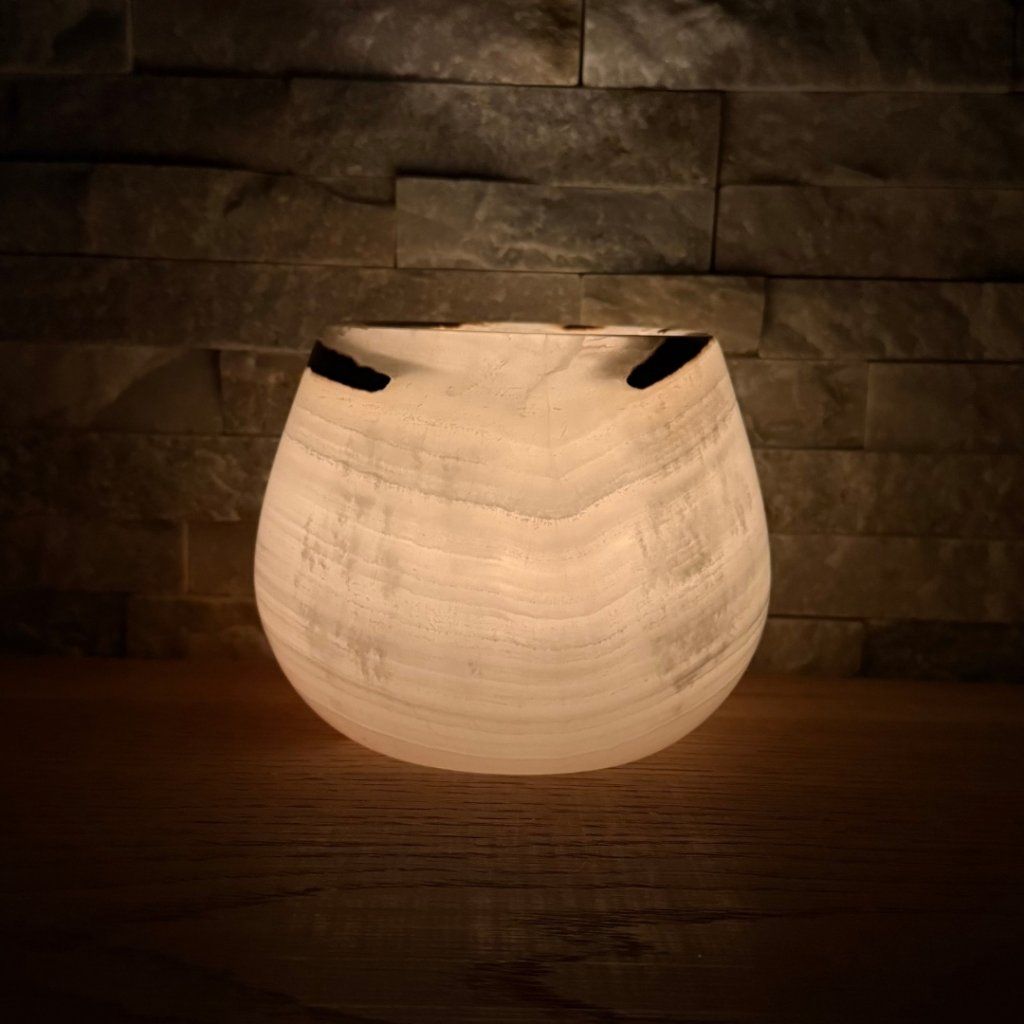 - Krásný ve dne, ještě hlubší večer – denní světlo ukáže kresbu kamene, zapálená svíčka jí přidá hloubku, teplo a klidnou atmosféru.
