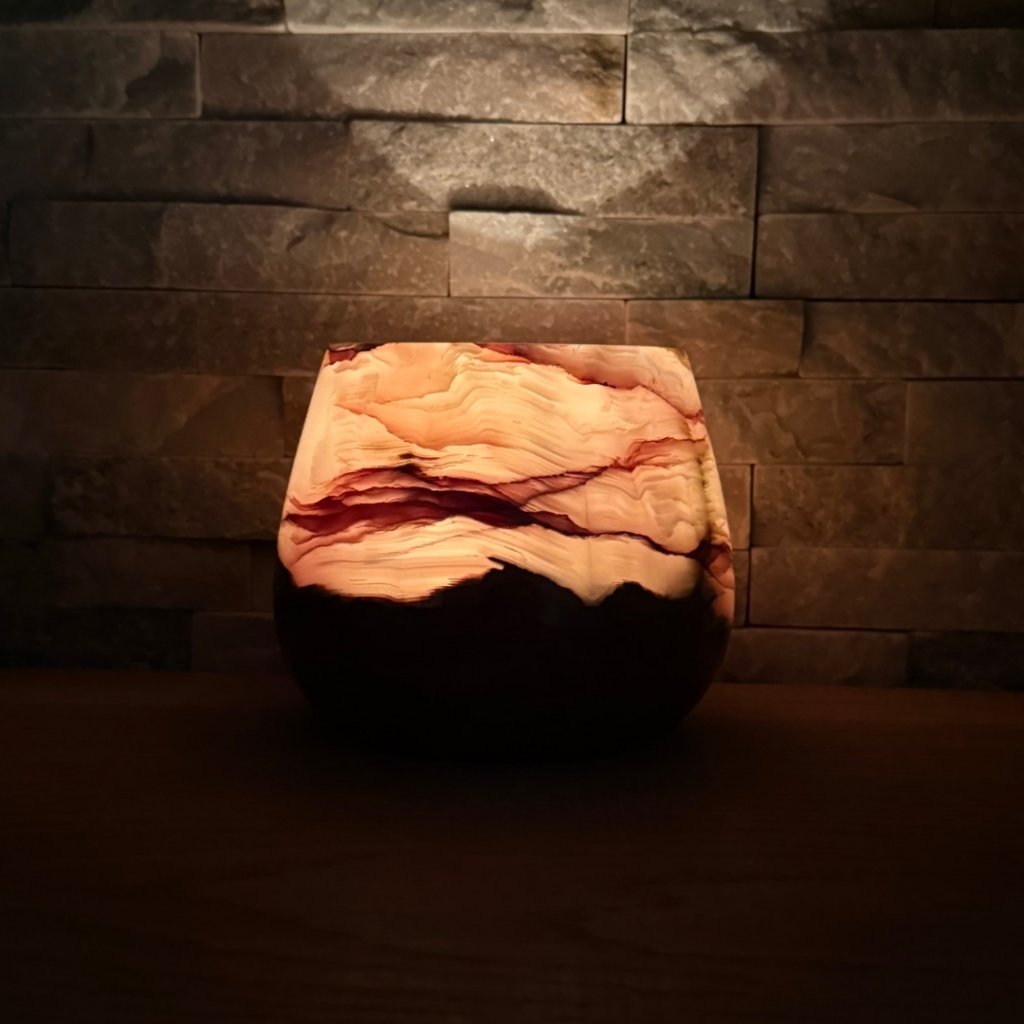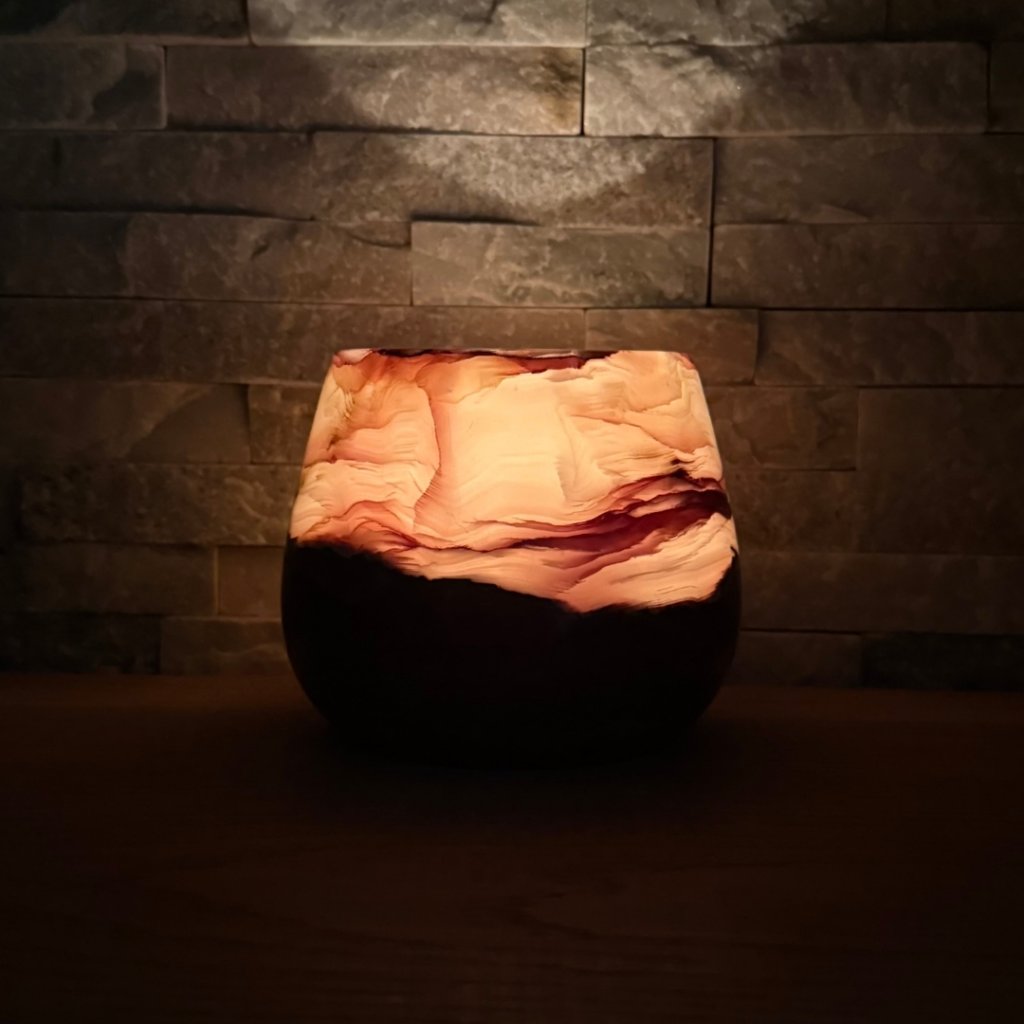 - Krásný ve dne, ještě hlubší večer – denní světlo ukáže kresbu kamene, zapálená svíčka jí přidá hloubku, teplo a klidnou atmosféru.