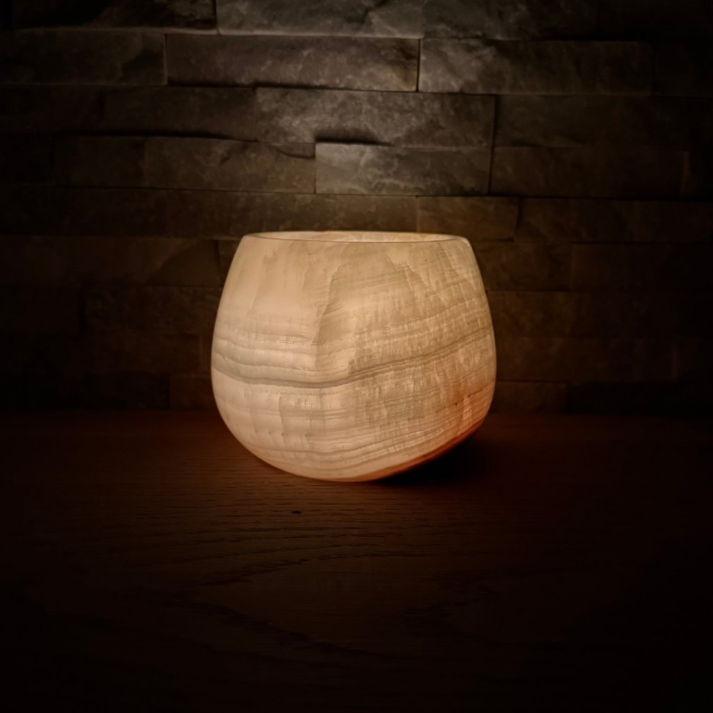 - Krásný ve dne, ještě hlubší večer – denní světlo ukáže kresbu kamene, zapálená svíčka jí přidá hloubku, teplo a klidnou atmosféru.