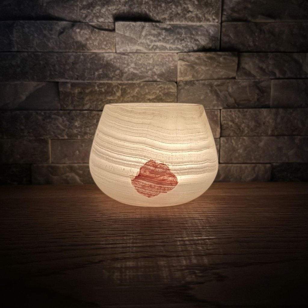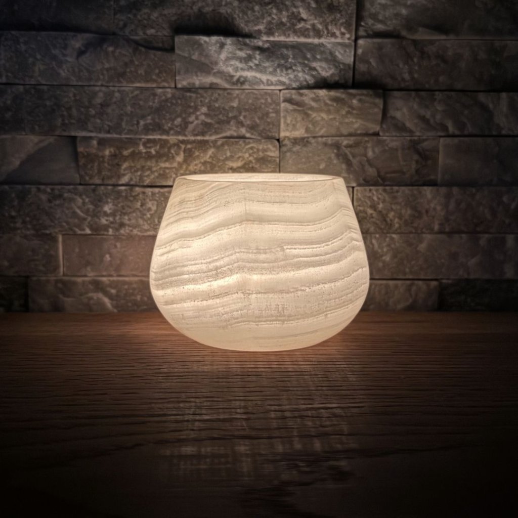 - Krásný ve dne, ještě hlubší večer – denní světlo ukáže kresbu kamene, zapálená svíčka jí přidá hloubku, teplo a klidnou atmosféru.