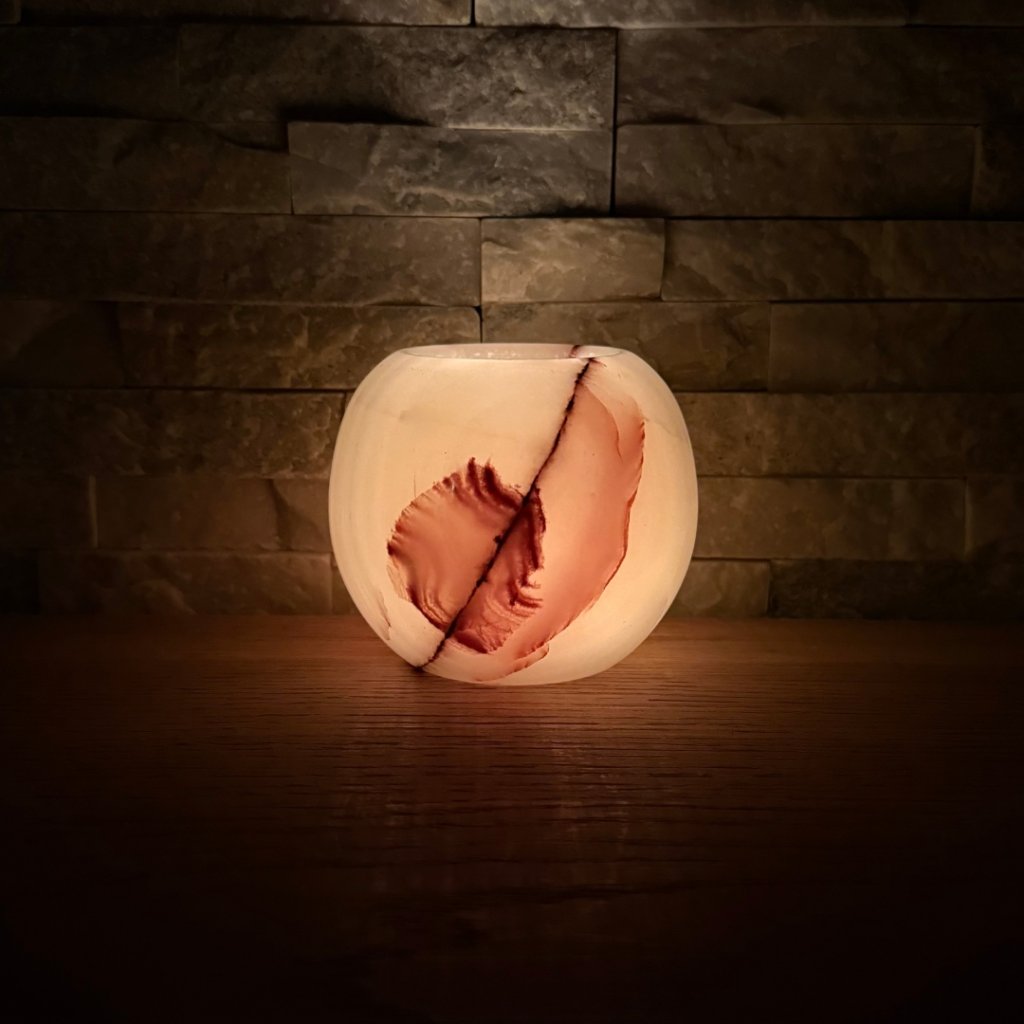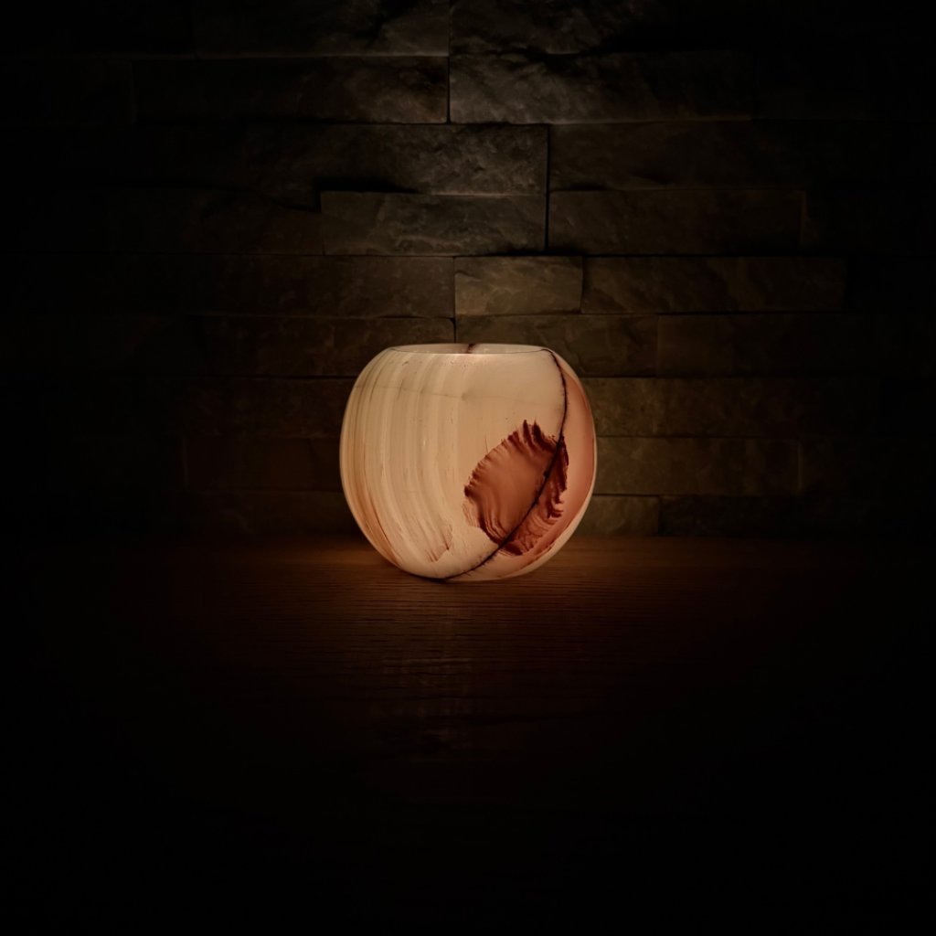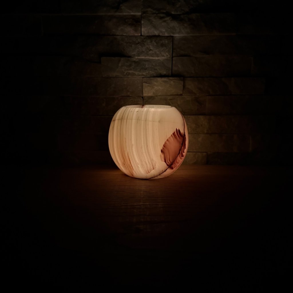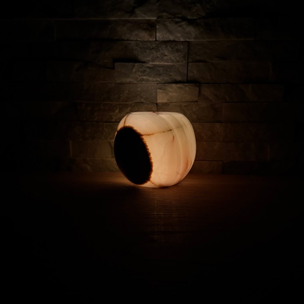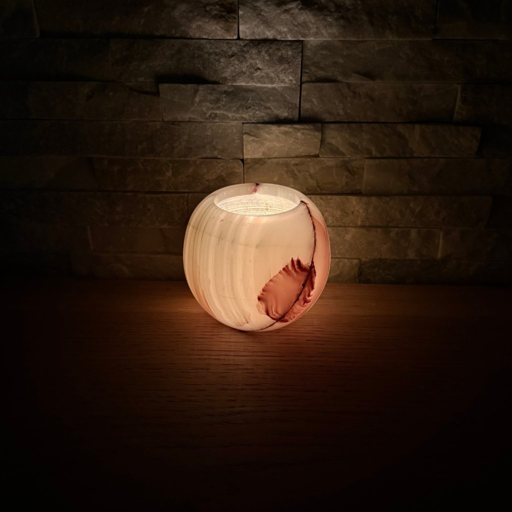 - Krásný ve dne, ještě hlubší večer – denní světlo ukáže kresbu kamene, zapálená svíčka jí přidá hloubku, teplo a klidnou atmosféru.