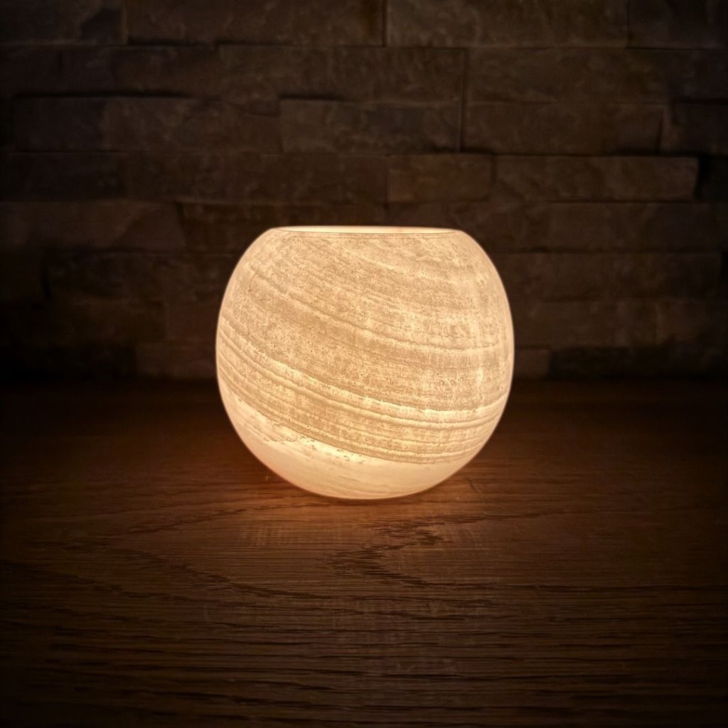 - Krásný ve dne, ještě hlubší večer – denní světlo ukáže kresbu kamene, zapálená svíčka jí přidá hloubku, teplo a klidnou atmosféru.