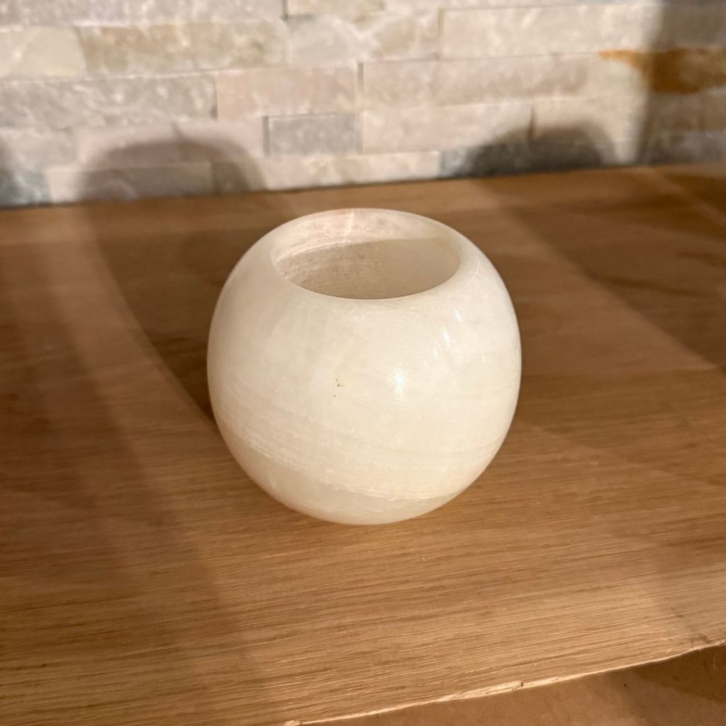 Aragonit je odolný a trvanlivý kámen, který na rozdíl od solných svícnů zvládá i vlhčí prostředí. Je přirozeně porézní, drobné dírky, bublinky nebo vlasové trhlinky jsou jeho běžnou součástí a nejsou důvodem k reklamaci.