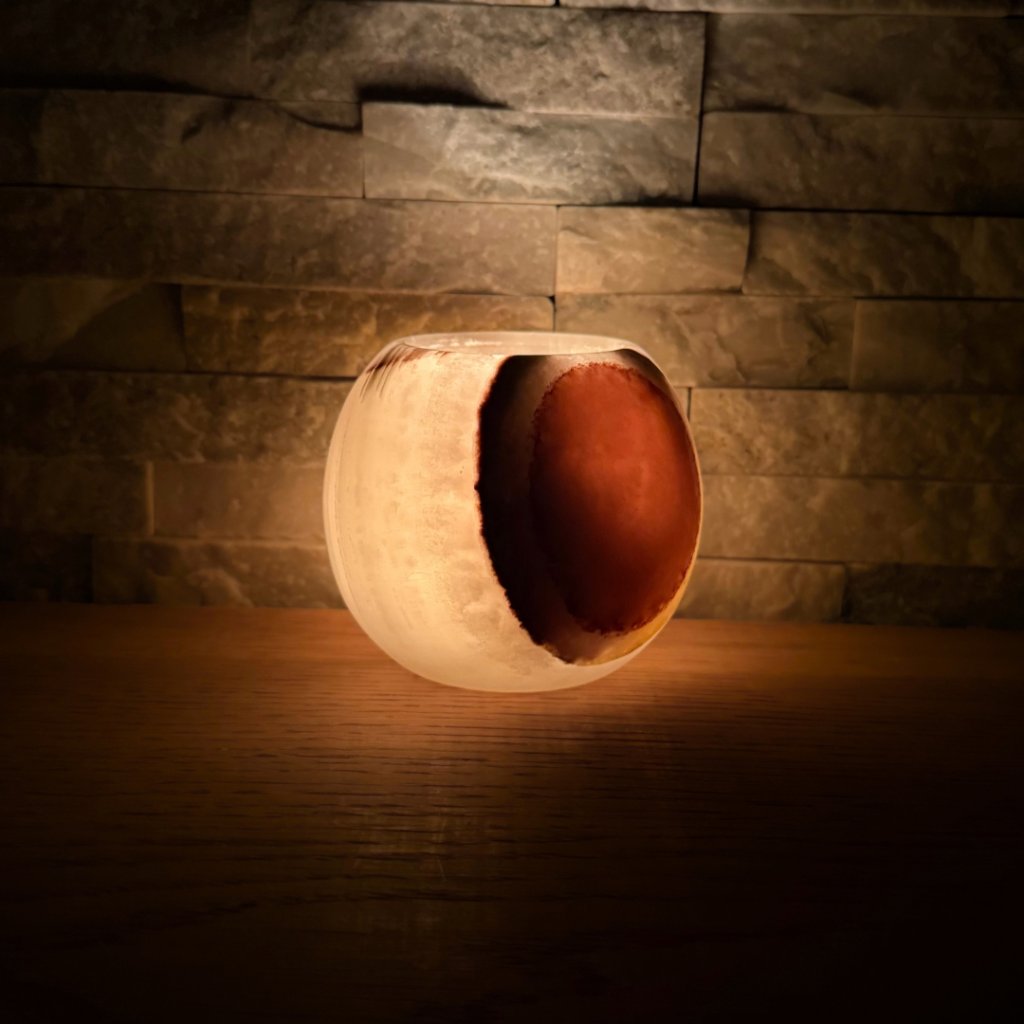 - Krásný ve dne, ještě hlubší večer – denní světlo ukáže kresbu kamene, zapálená svíčka jí přidá hloubku, teplo a klidnou atmosféru.