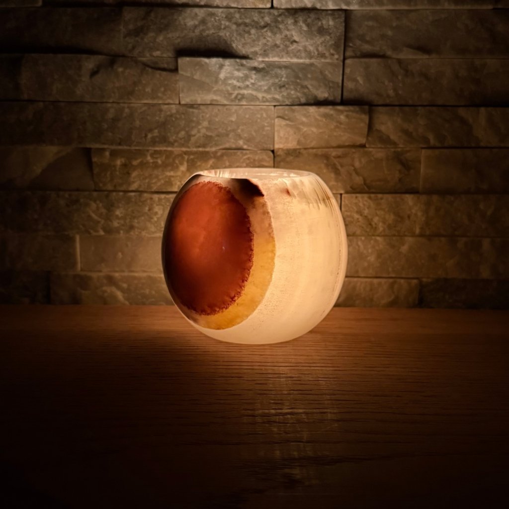 Svícen kulatý - Zatmění slunce konkrétní kus z fotek, jedinečný originál, průměr cca 9,5 cm