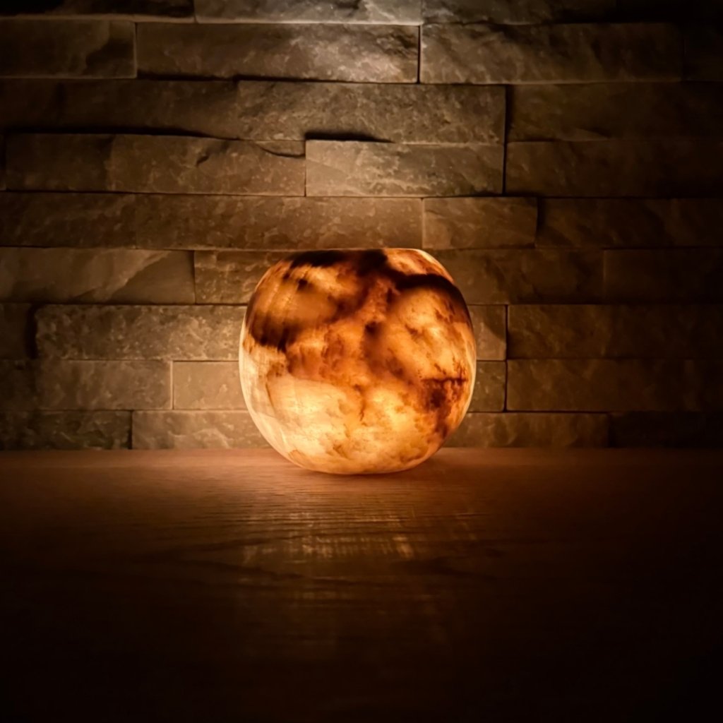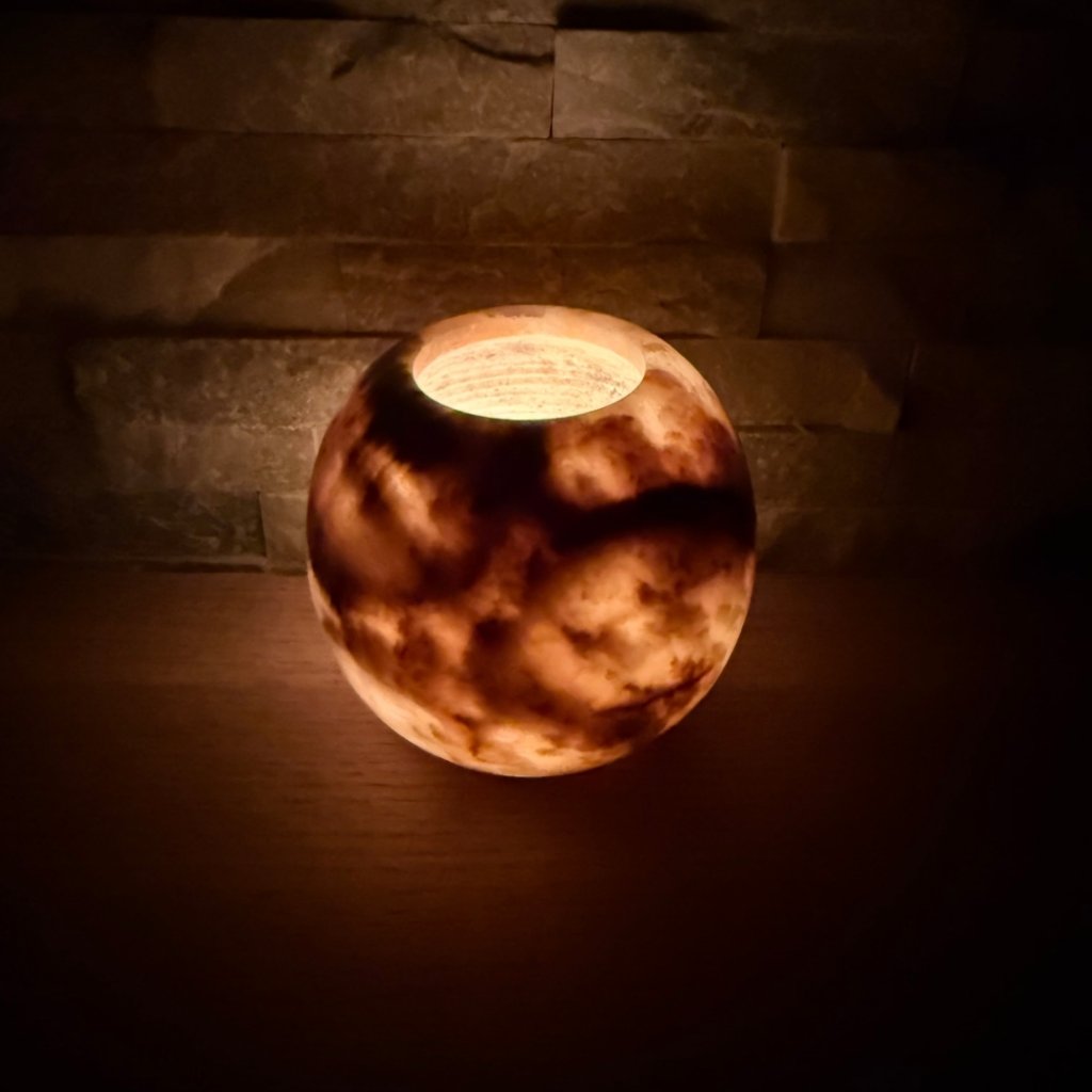 - Krásný ve dne, ještě hlubší večer – denní světlo ukáže kresbu kamene, zapálená svíčka jí přidá hloubku, teplo a klidnou atmosféru.