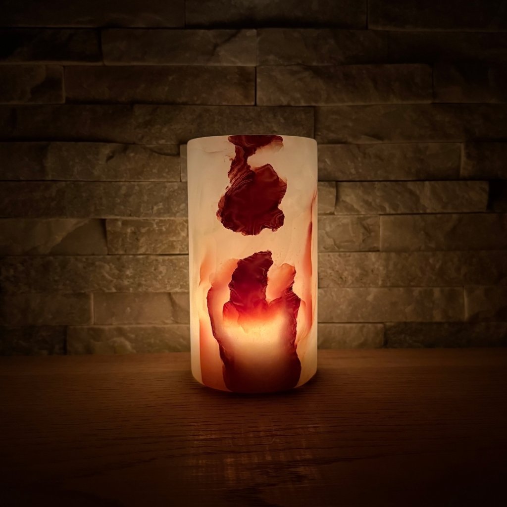 - Krásný ve dne, ještě hlubší večer – denní světlo ukáže kresbu kamene, zapálená svíčka jí přidá hloubku, teplo a klidnou atmosféru.