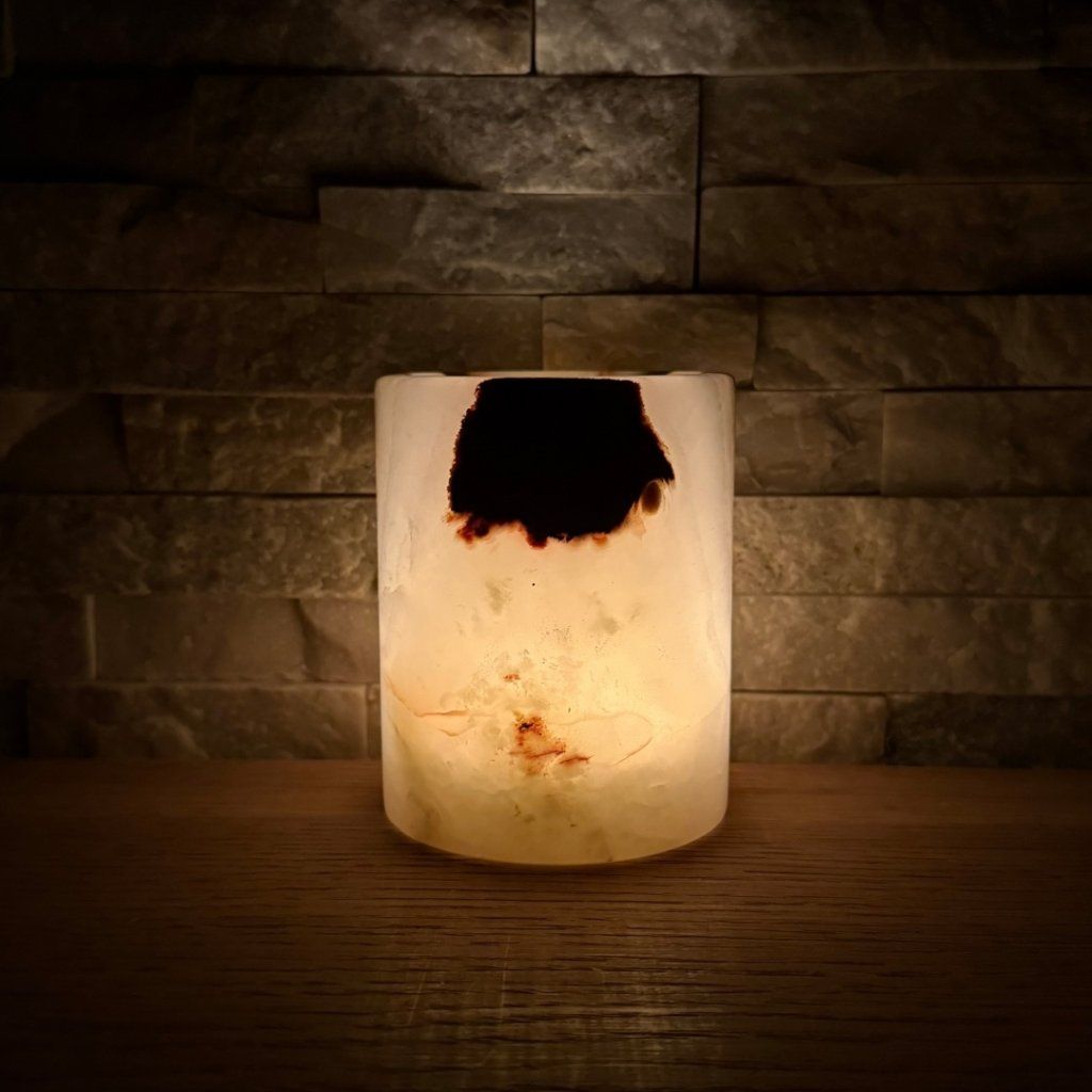 Každý svícen z aragonitu je jedinečný svým vzhledem. Tento konkrétní kus má přesně takovou strukturu, žilkování a barevnost, jakou vidíte na fotkách. Doporučujeme si fotogalerii projít opravdu pečlivě, abyste věděli, jaký svícen si domů vybíráte. Po zapálení čajové svíčky začne světlo jemně prosvítat kamenem a zvýrazní jeho přirozenou kresbu.